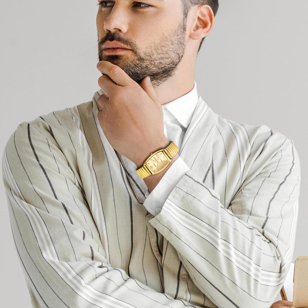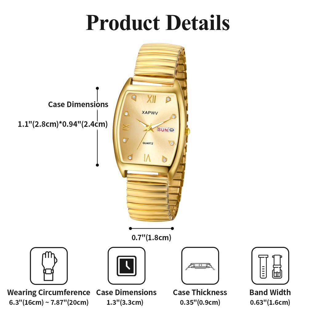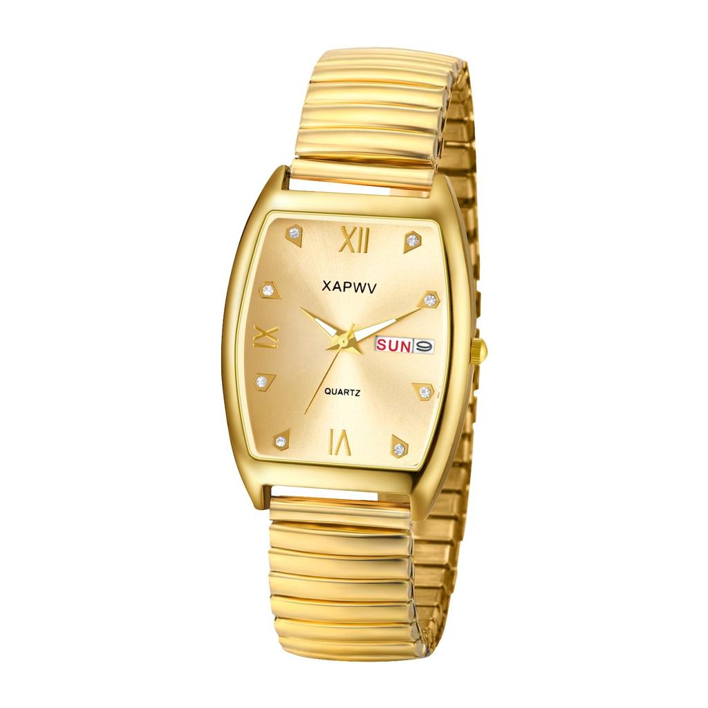 Парные часы из золота 3ATM Водонепроницаемые из нержавеющей стали Римский алфавит Аналоговый дисплей Парные часы Кварцевые часы Бриллиант Золотой подарок на день Мужской ремешок -