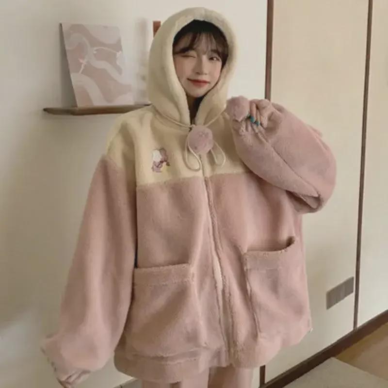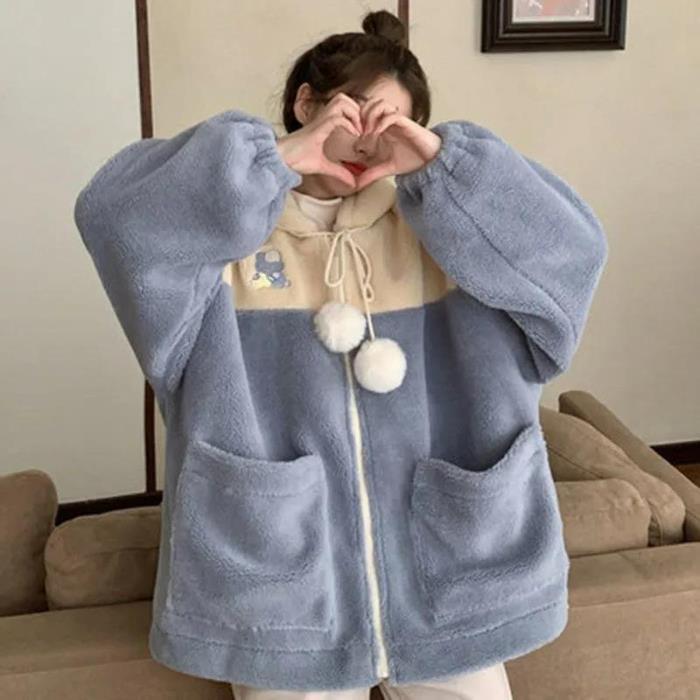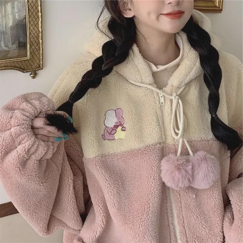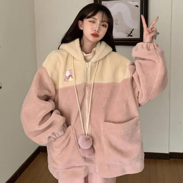 Свободное пальто из шерсти ягненка в корейском стиле 2024 года для студенток - уютный бархатный свитер на осень/зиму