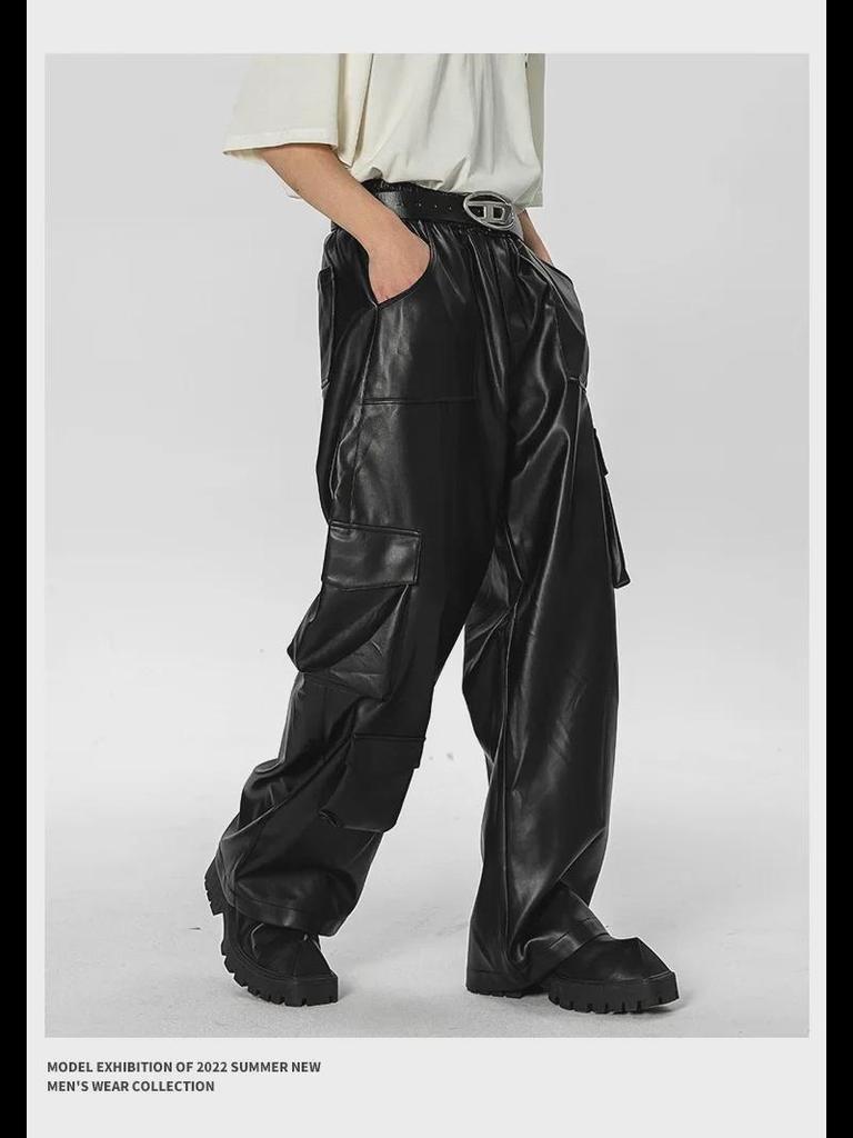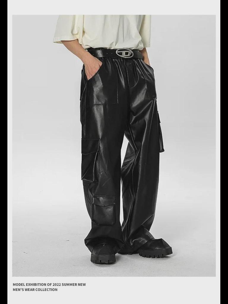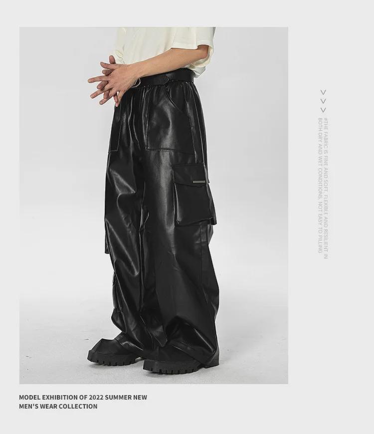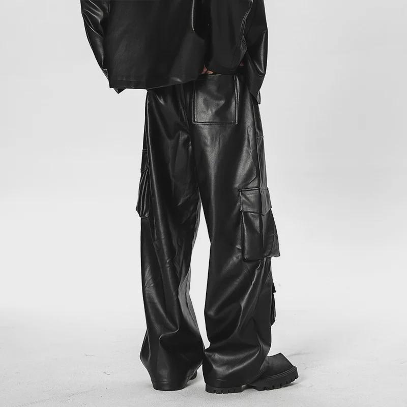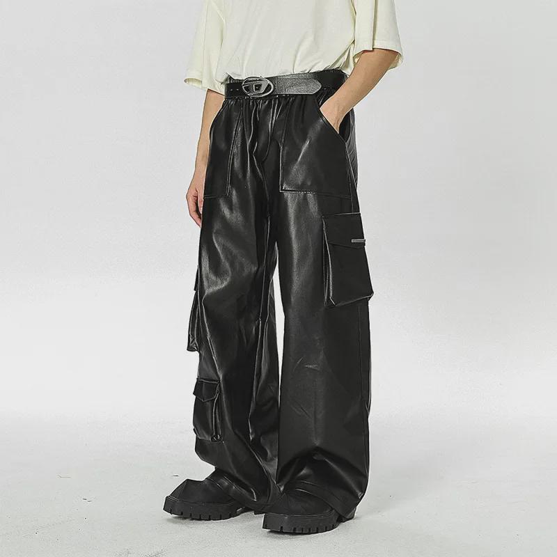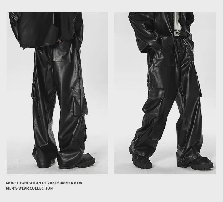 Комбинезон с несколькими карманами в стиле ретро West Coast: Повседневные кожаные штаны в стиле хип-хоп и панк