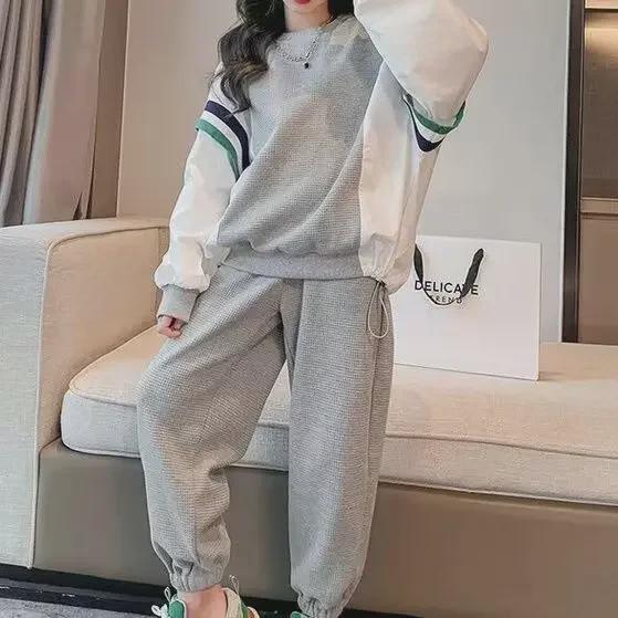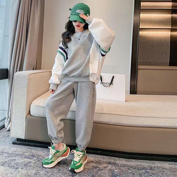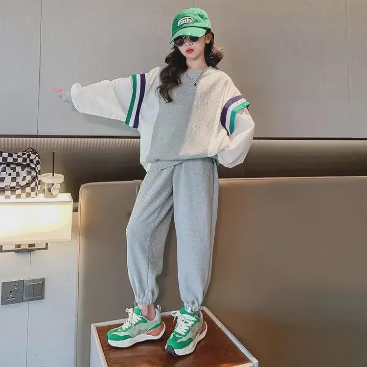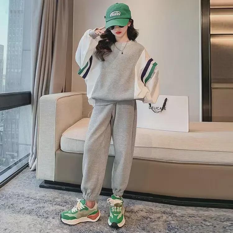 Трендовый спортивный костюм из двух частей для девочек весна-осень 2024 года: Стильный комплект толстовок для детей постарше
