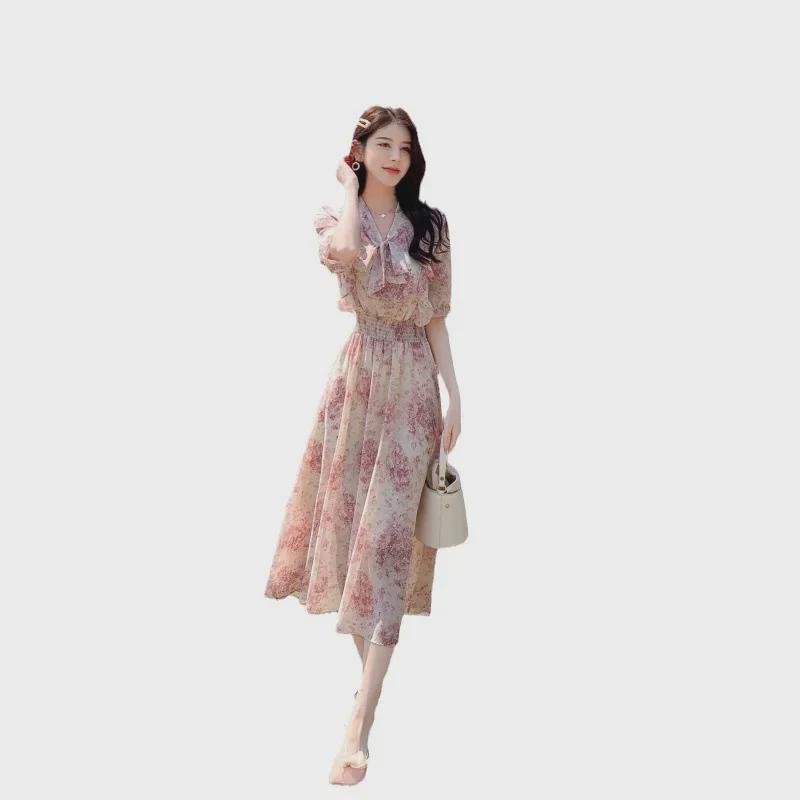Летнее платье из шифона с оборками и цветочным узором в европейском и американском стиле - французский стиль