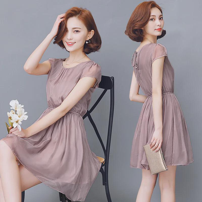 Летнее платье Mulberry Silk Slim Fit с короткими рукавами для женщин, доступны большие размеры
