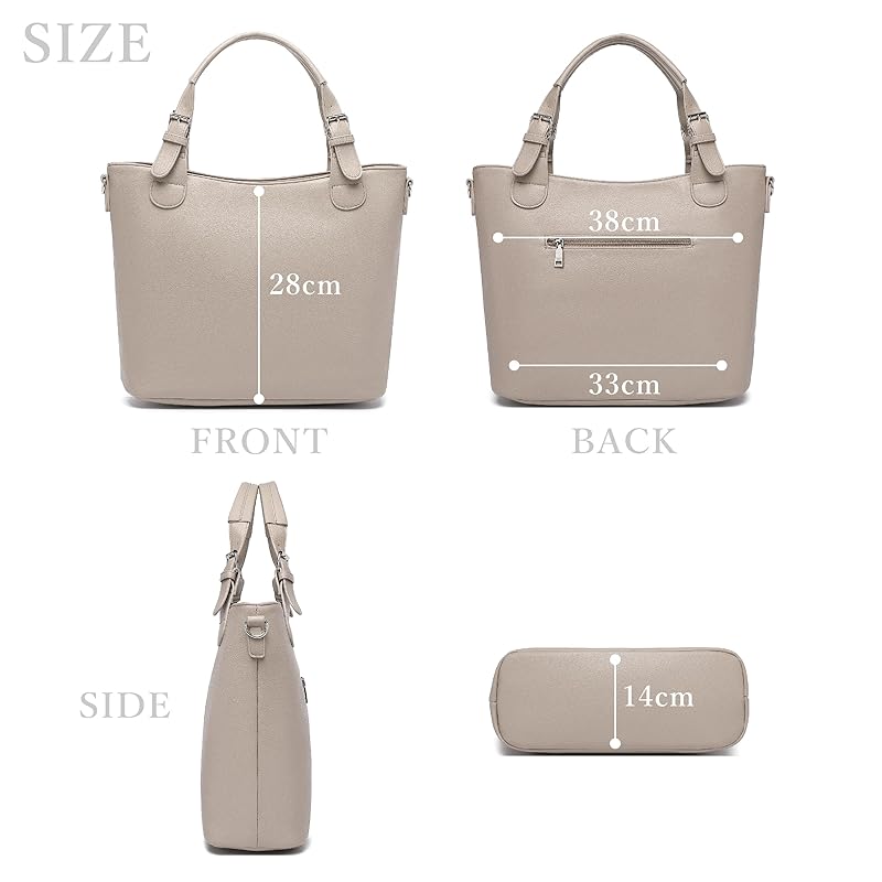 Ширина: Верх 38см, низ 33см, Высота (центр): 28cm, Глубина: 13см, ручка (длина): 43~53см, Ручка (высота): 16~21см, Вес: 620 г, [Открытие] Молния [Внешний карман]] Задний карман на молнии x 1 [Внутренний карман] Открытый карман x 2, карман на молнии x 1, Материал: Кожа PU