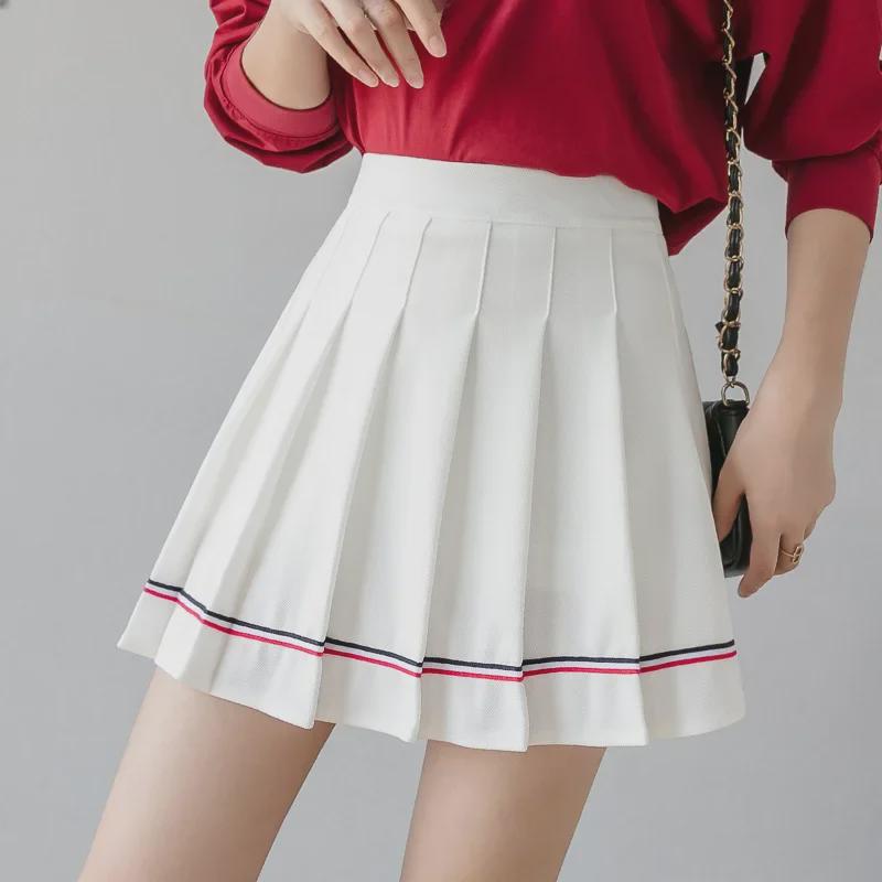 Плиссированная юбка А-силуэта в цветную полоску с высокой талией: Женская шорты-юбка в студенческом стиле, защищающая от открывания, Осень/Зима 2025 — купить товар онлайн с бесплатной доставкой по всему миру!
