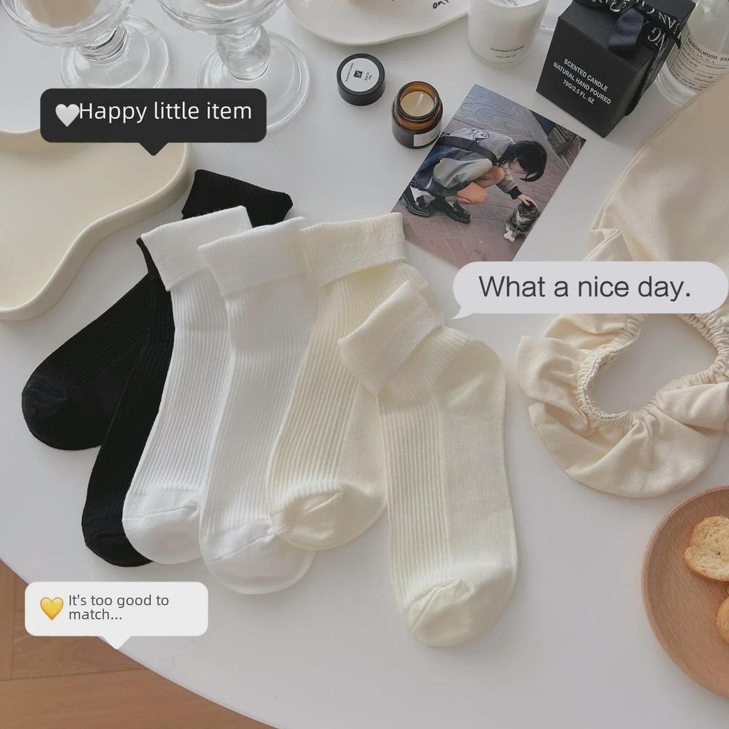 Кремово-белые вертикальные полосатые носки средней длины для женщин - весна/осень в японском стиле, универсальные однотонные носки JK