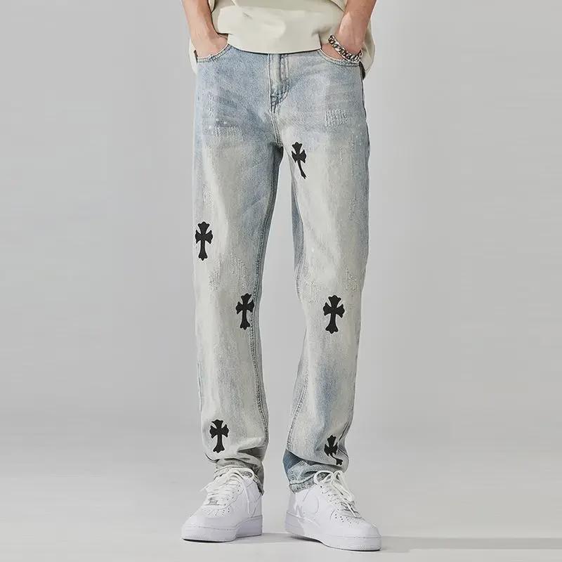 Мужские летние джинсы с широкими штанинами и принтом: Европейский и американский уличный стиль