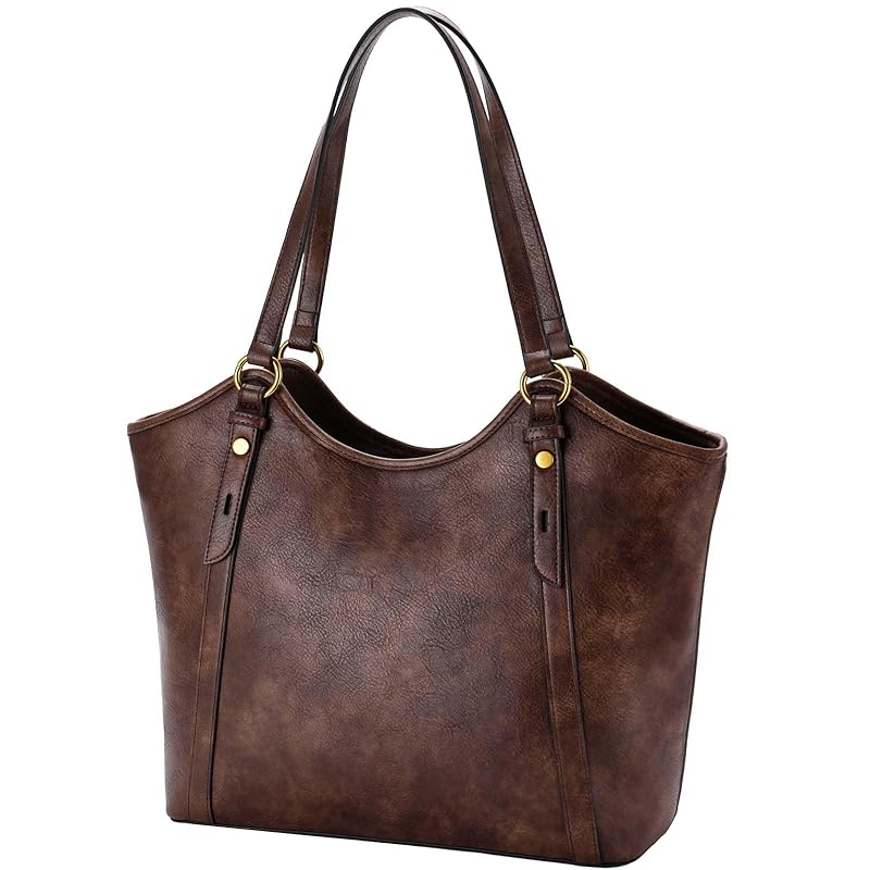 VASCHY tote bag ladies, fashion PU leather large capacity handbag business bag shoulder bag crossbody bag commute trip With zipper coffee