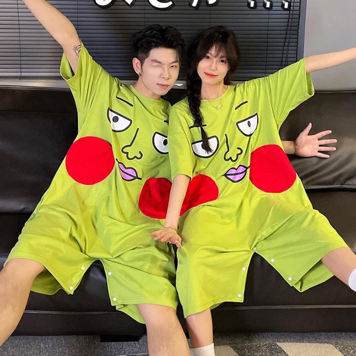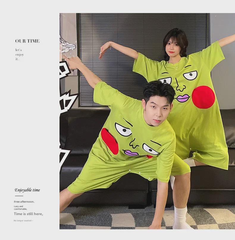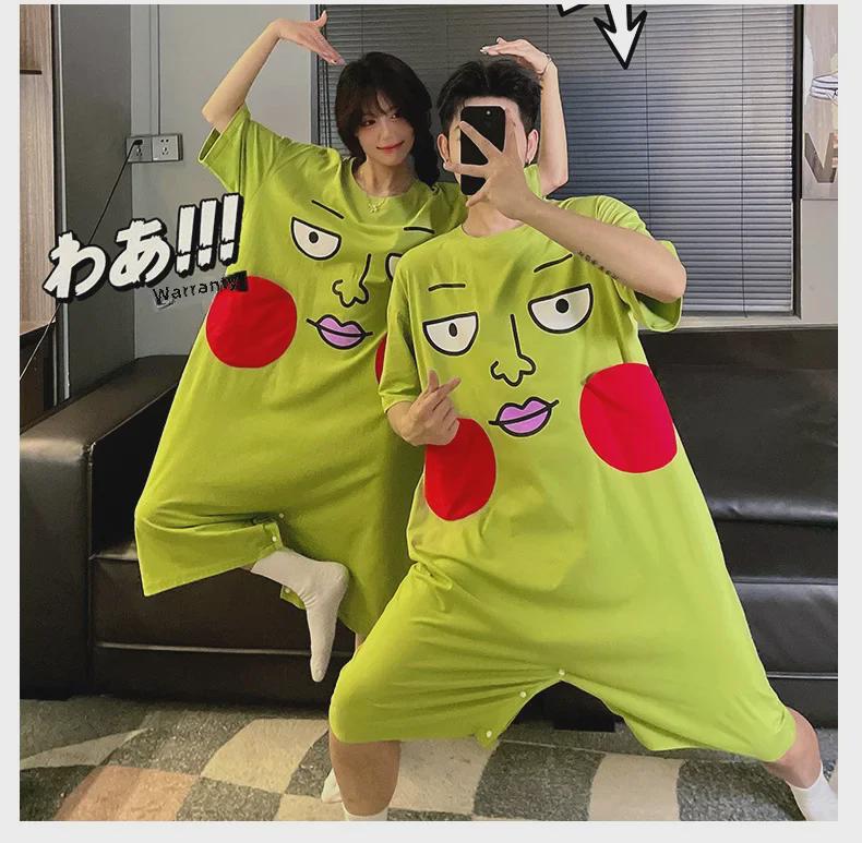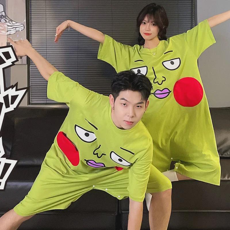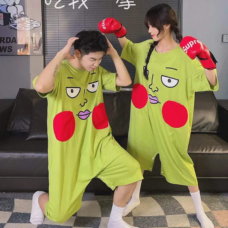 Летняя ночная рубашка из чистого хлопка с ямочками - свободное домашнее платье с коротким рукавом для пар для женщин