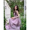 Фиолетовое платье с подтяжками: Женское летнее платье Fairy Style 2024 года, однотонное, утягивающее талию, длинное платье для отпуска