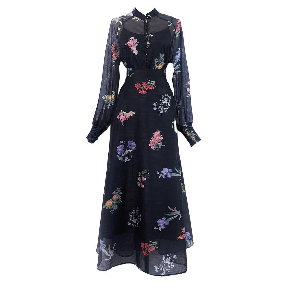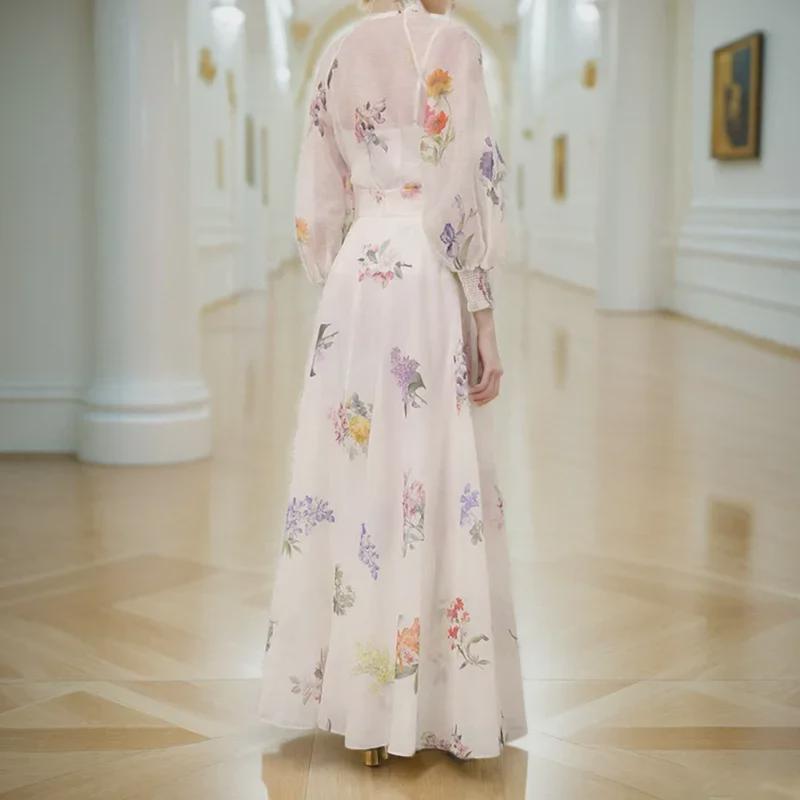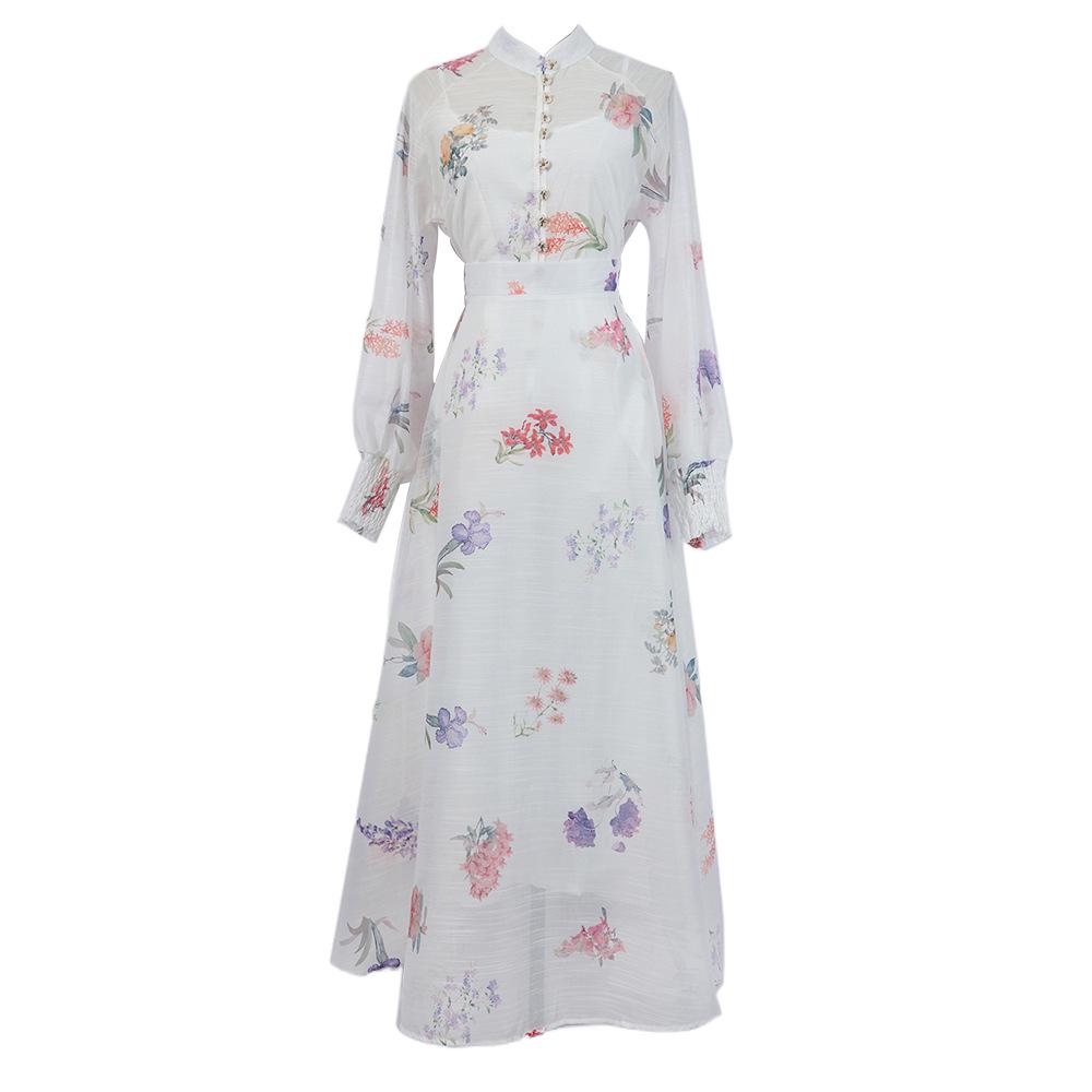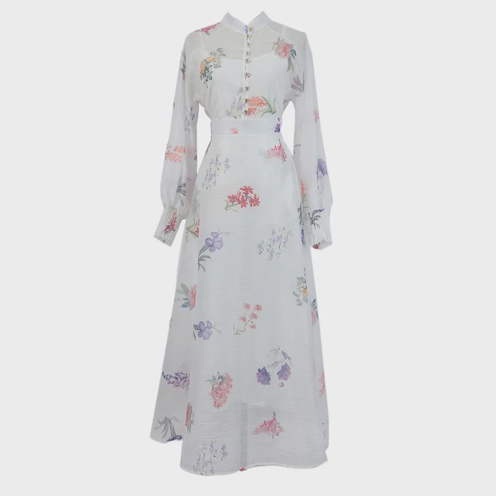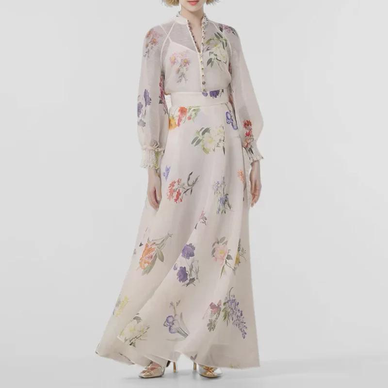 Женский костюм с юбкой от австралийского дизайнера: Однобортная рубашка с длинными рукавами и принтом, подтяжками и длинной юбкой