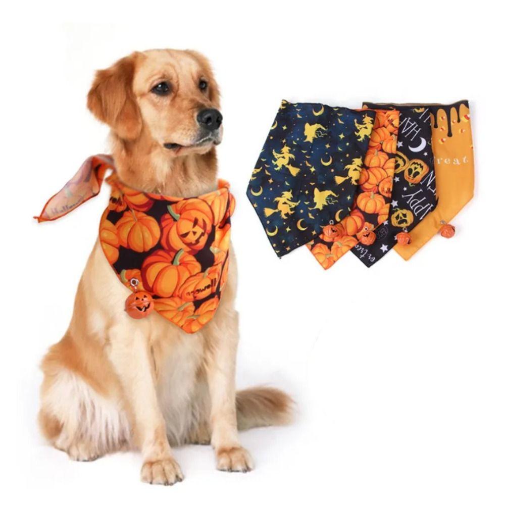 С колокольчиком Хэллоуин шарф для домашних животных дышащая тыква собака бандана фестиваль вечеринка