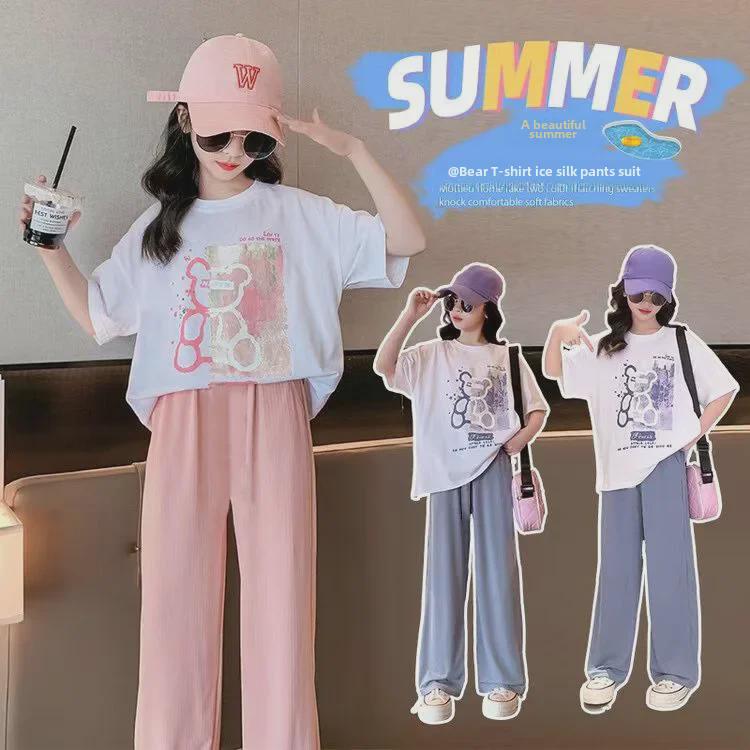 Лето 2025 Новый стильный комплект футболок с короткими рукавами для девочек для больших детей