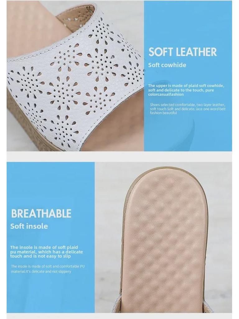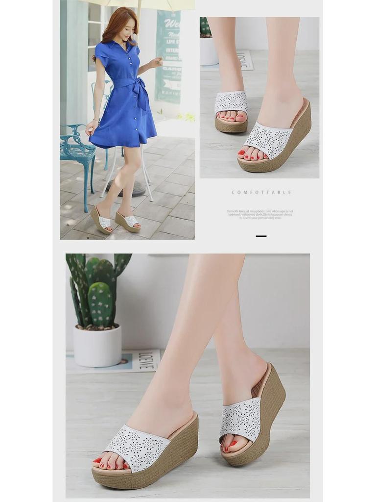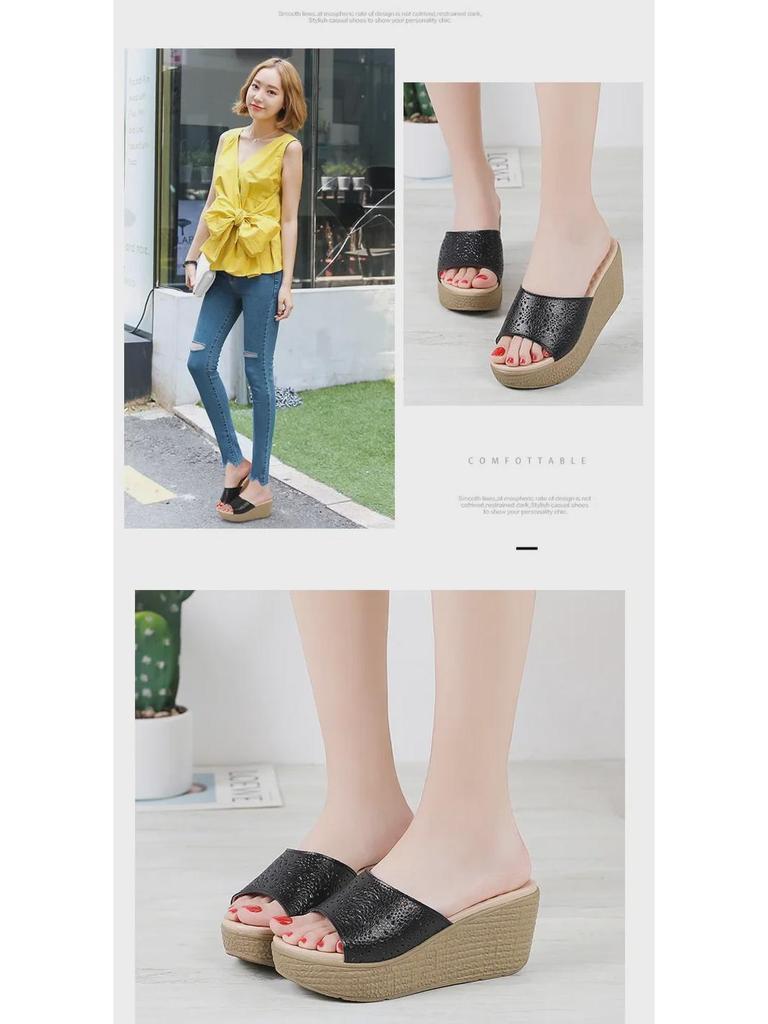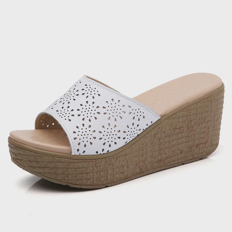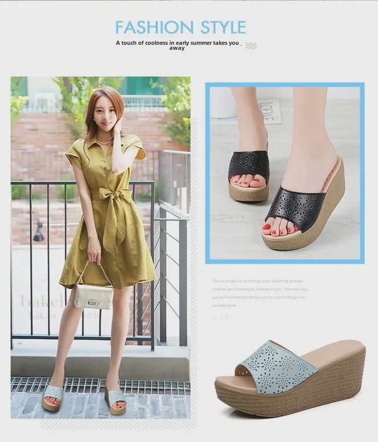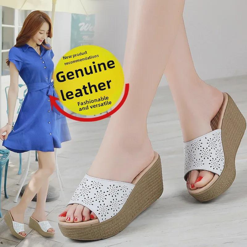 Женские босоножки на платформе с открытым носком из натуральной кожи - летние туфли на танкетке, толстая подошва, модная пляжная обувь