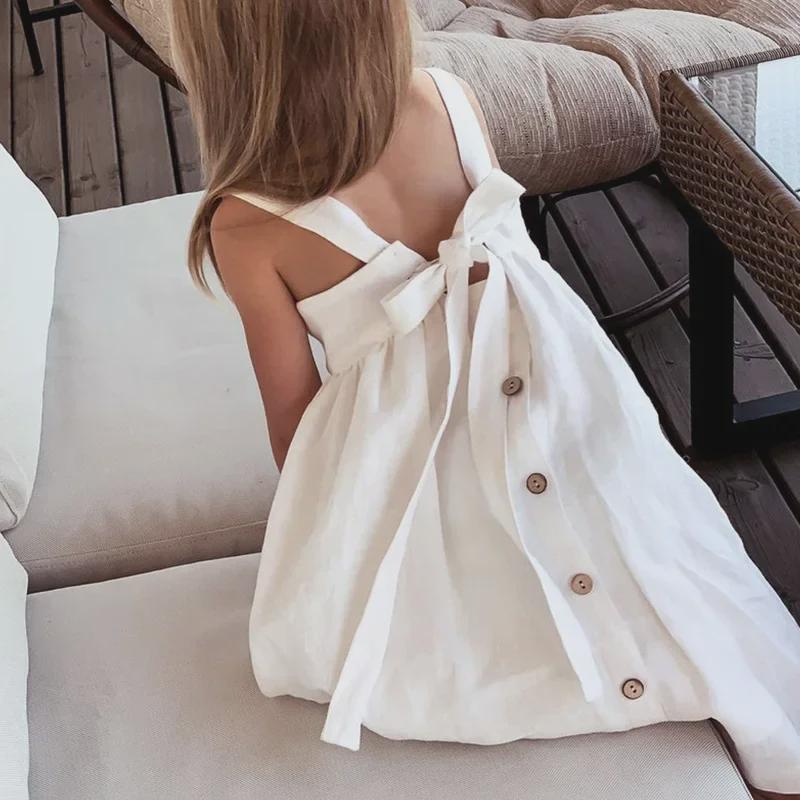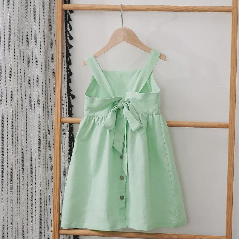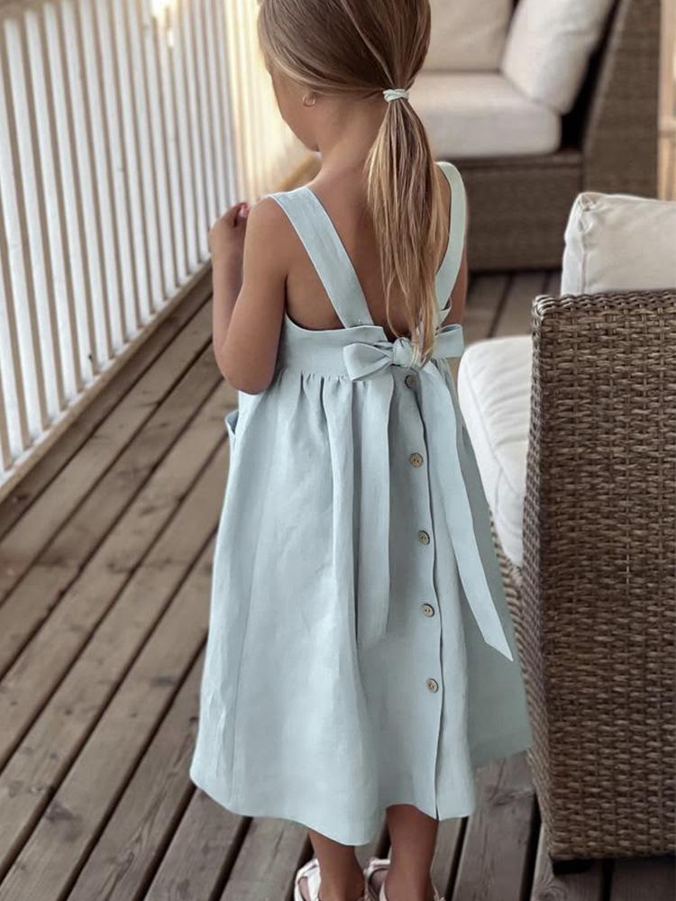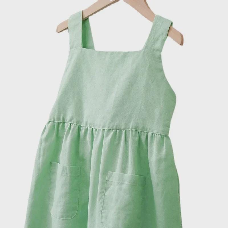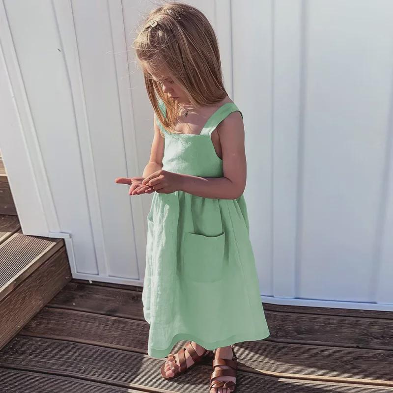 «Летний комбинезон для девочки из хлопка и льна без рукавов с карманами»