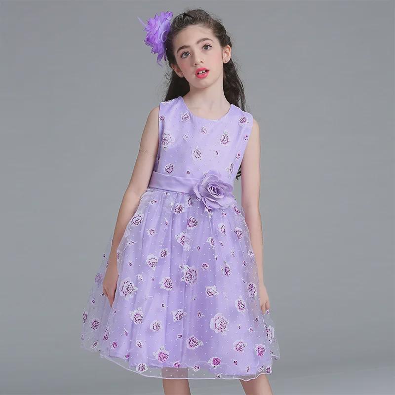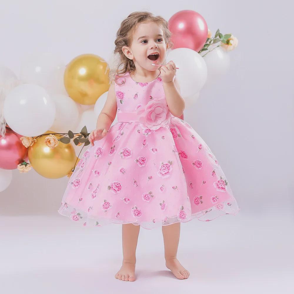 Платье принцессы с цветочным принтом для девочек в европейском и американском стиле 2025 года – элегантная юбка для подиума и свадьбы