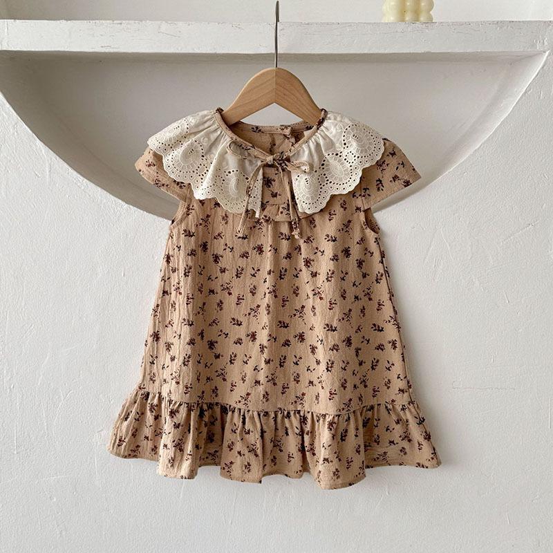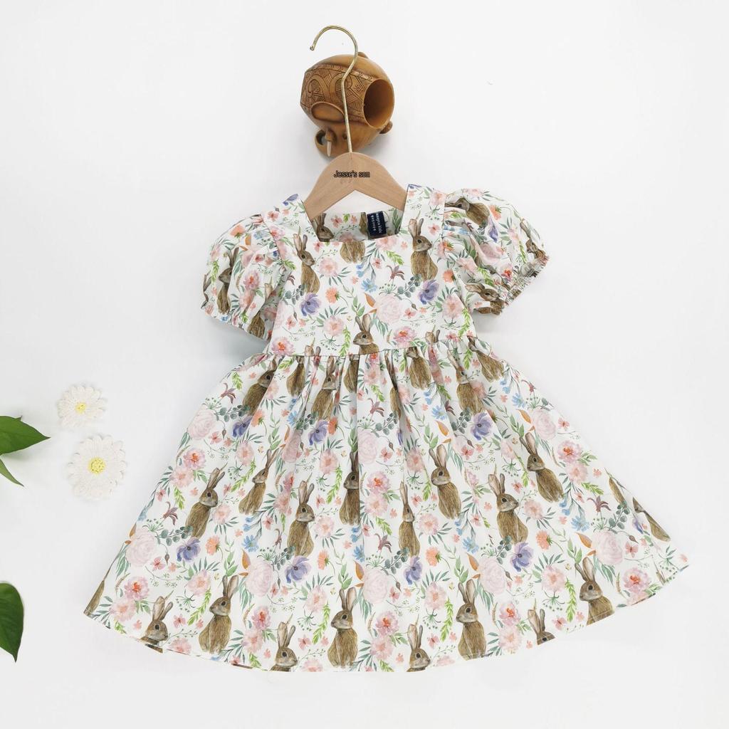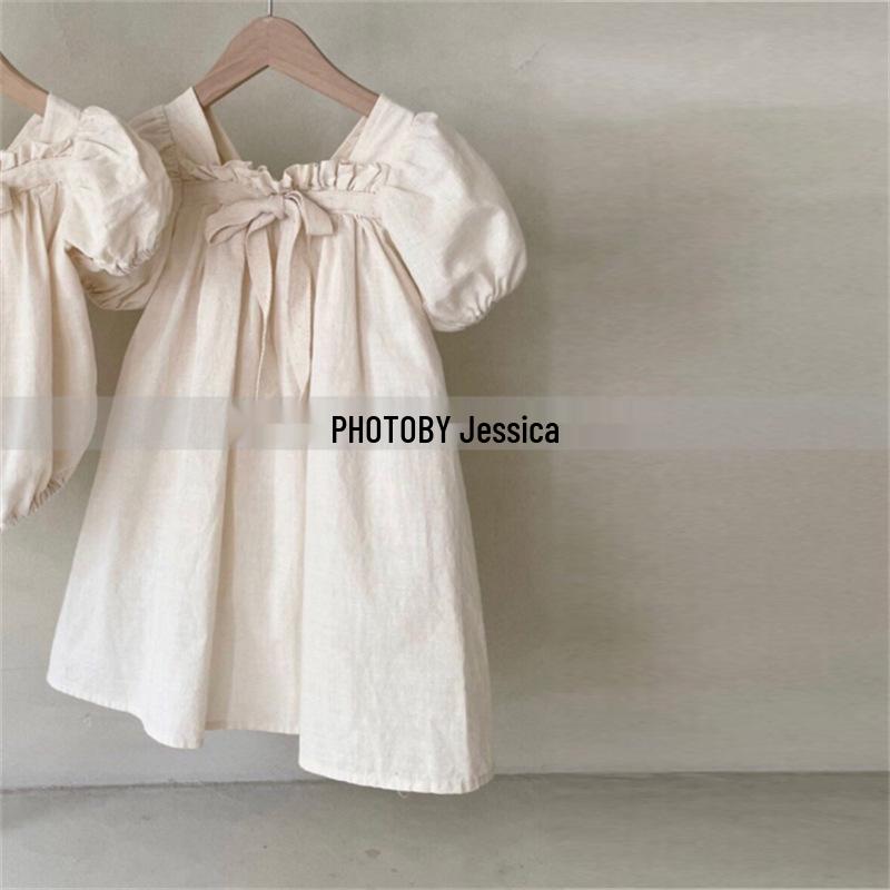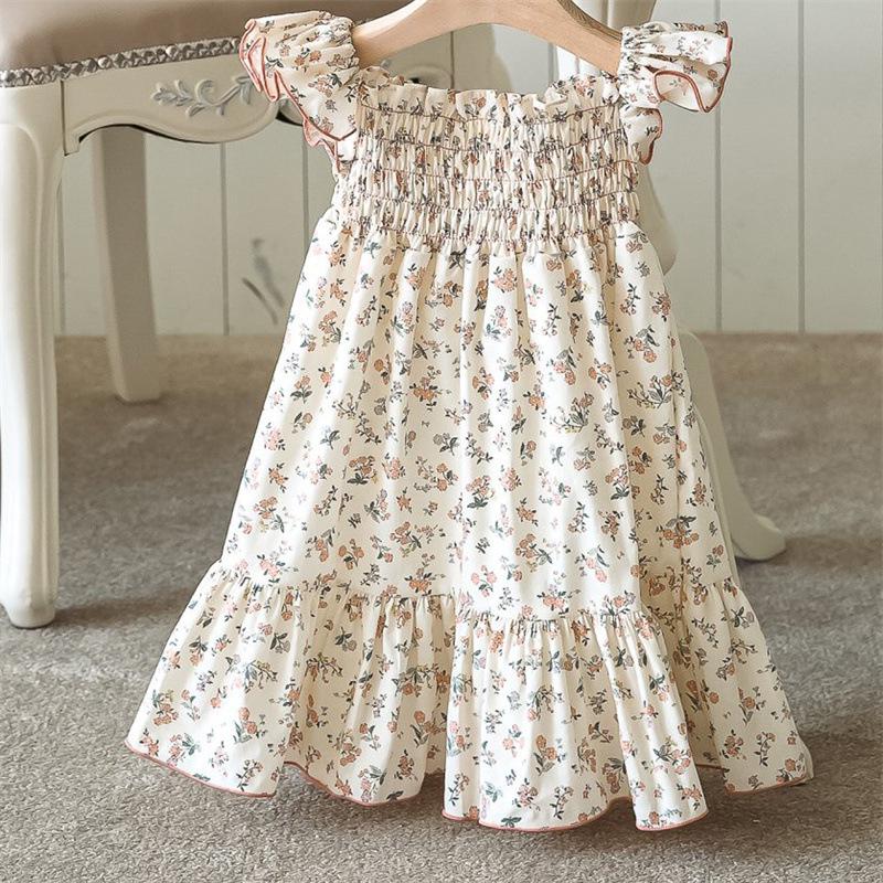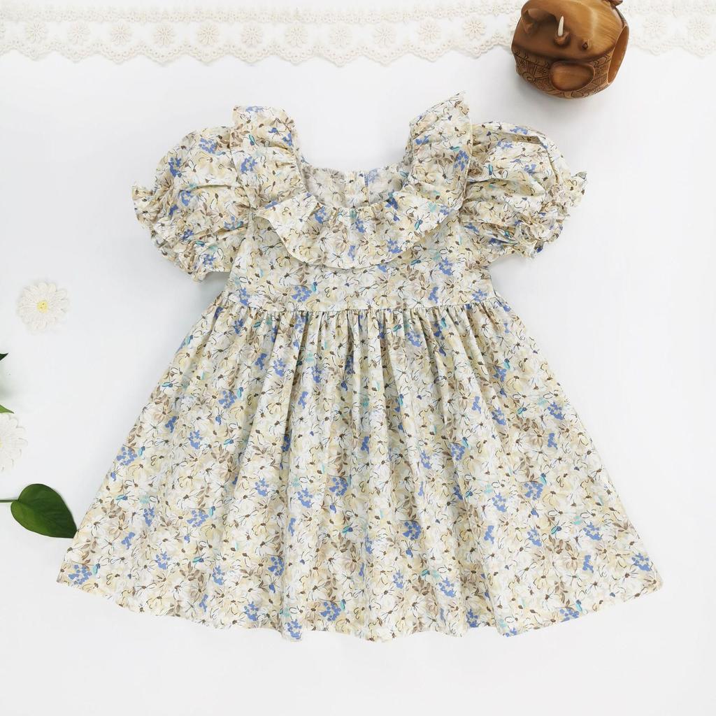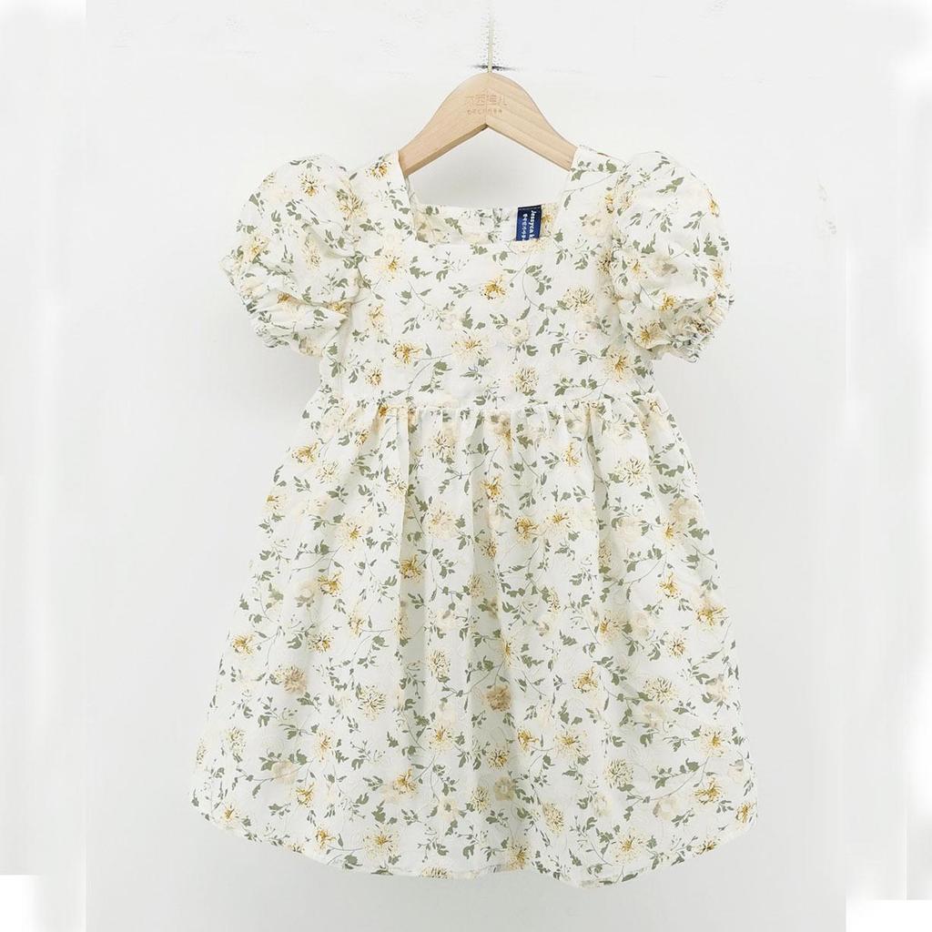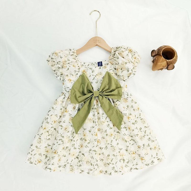 Корейское платье принцессы с цветочным принтом: Юбка с бантом и рукавами-фонариками для девочки