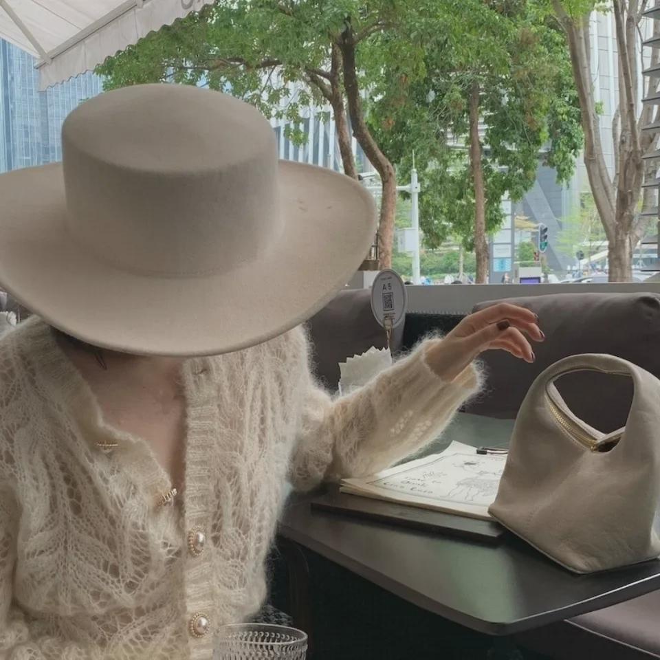 Кардиган из мохера с жемчужной отделкой - весна/лето 2022 г., женский свободный вязаный свитер, белый прозрачный фасон