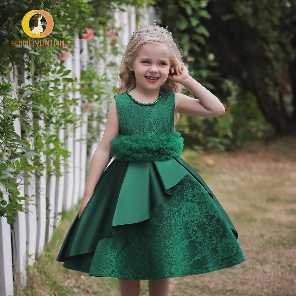 Пышное атласное платье принцессы для девочек - короткий летний наряд для свадьбы и выступлений для детей