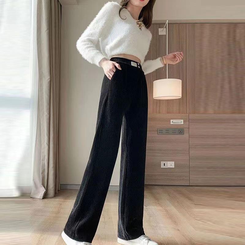 Женские широкие штаны для йоги с высокой талией — облегающий крой, плюс бархат, утолщенные, свободные, повседневные прямые штанины, удлиненные