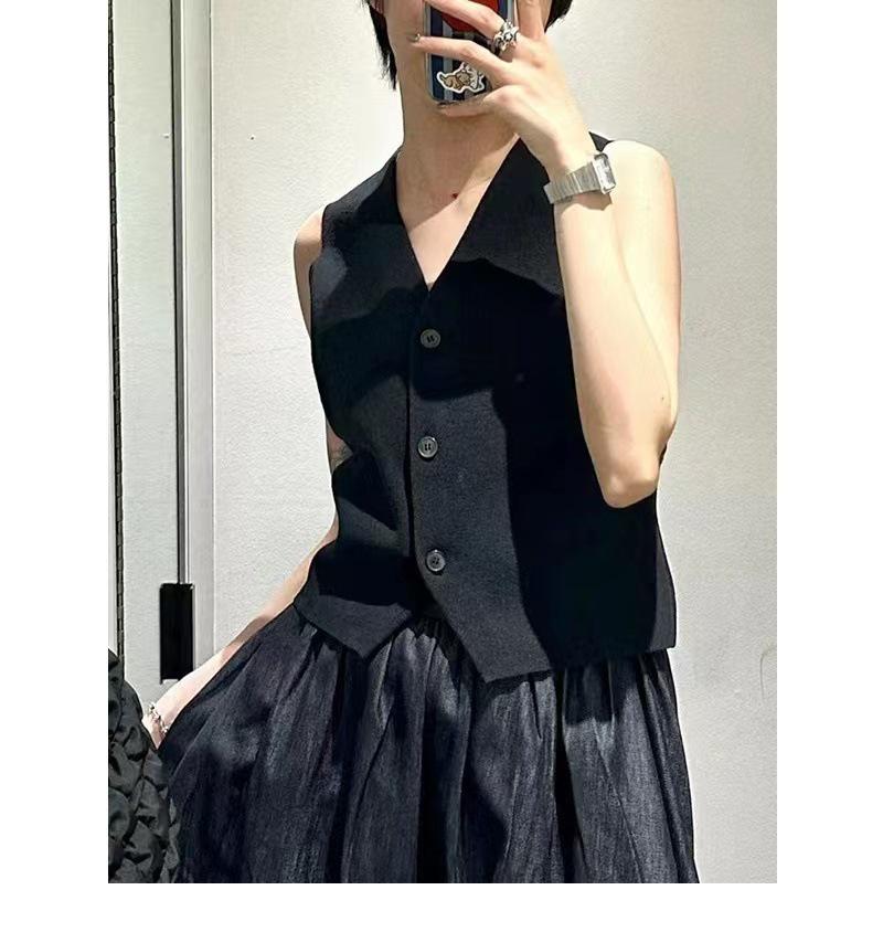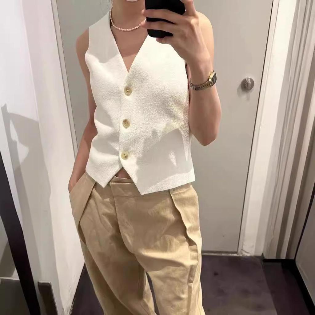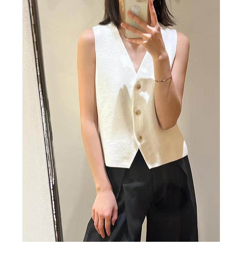 Женский трикотажный жилет без рукавов с V-образным вырезом, весна 2025 г.: Повседневная верхняя одежда с короткими рукавами