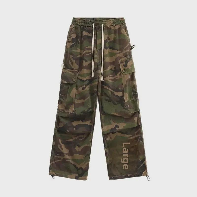 Мужской камуфляжный комбинезон в американском уличном стиле в стиле ретро с широкими штанинами и большими карманами