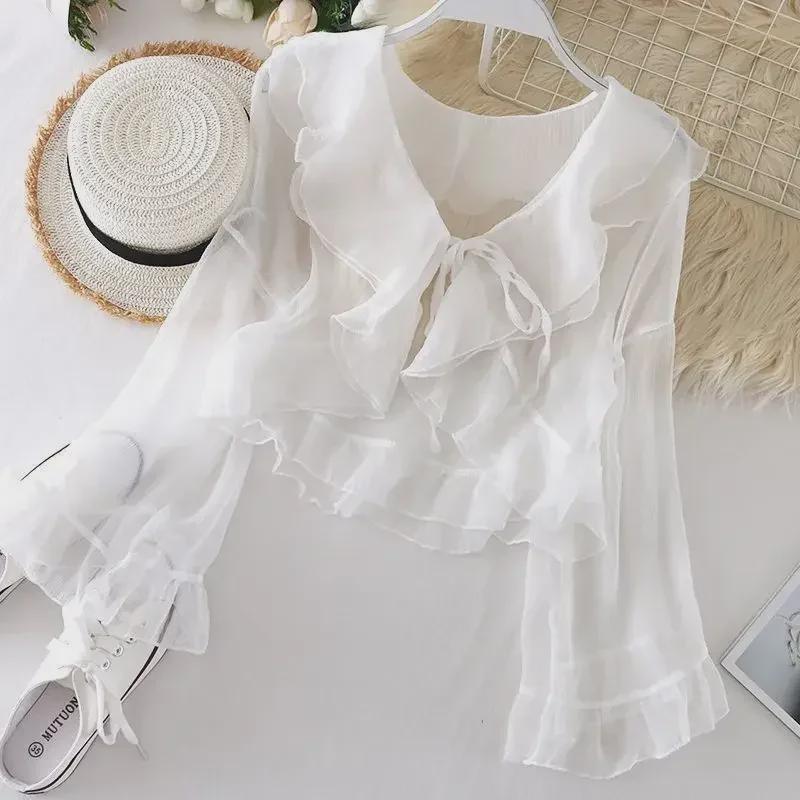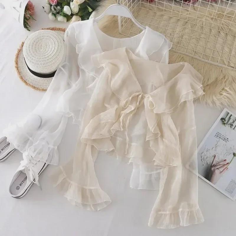 Женский летний топ на шнуровке с оборками на рукавах, юбкой и шалью