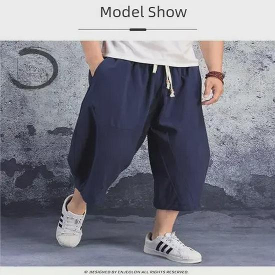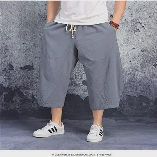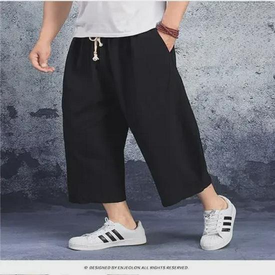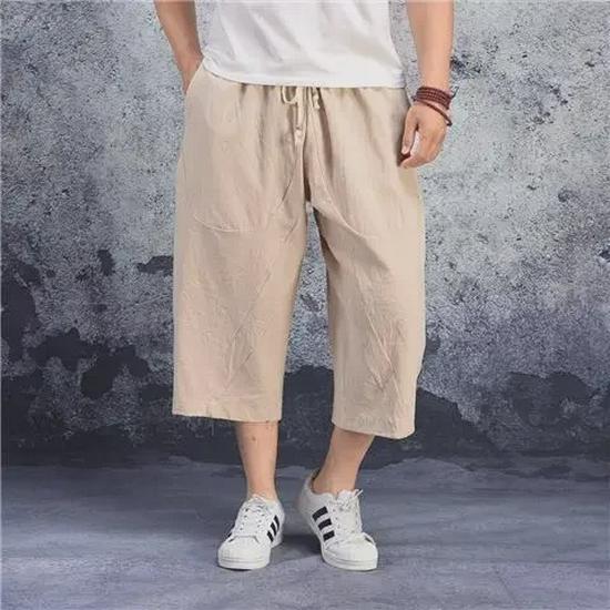 Мужские хлопковые льняные капри-шаровары больших размеров: Легкие, свободные повседневные брюки
