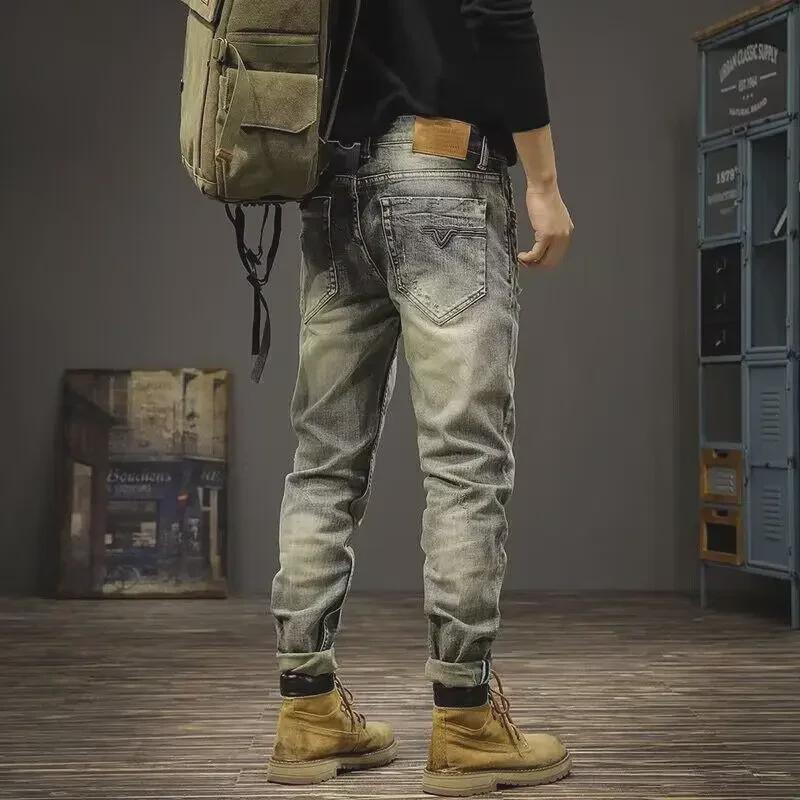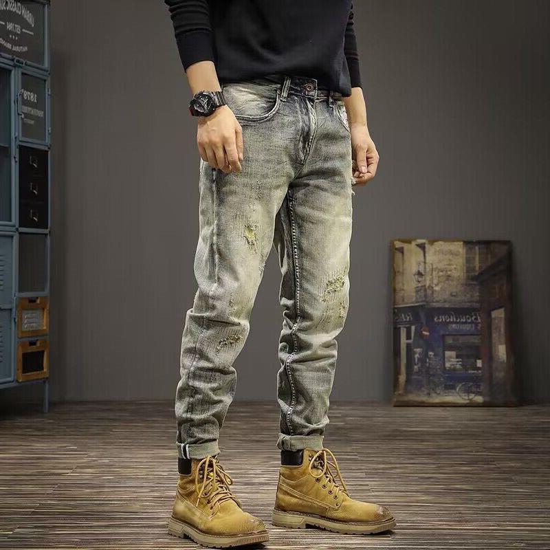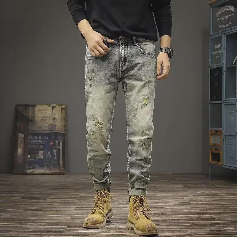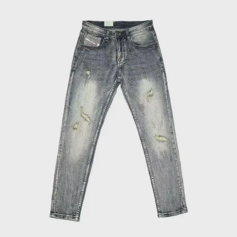 Весна 2023 г. Мужские ретро-рваные узкие джинсы Slim Fit Skinny