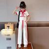 Летний костюм-двойка для девочек в корейском стиле с короткими рукавами 2024 года: Модные брюки для детей среднего и старшего возраста