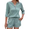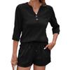 Женский новый весенне-летний однотонный свободный костюм с V-образным вырезом и рукавами средней длины, с шортами и карманами