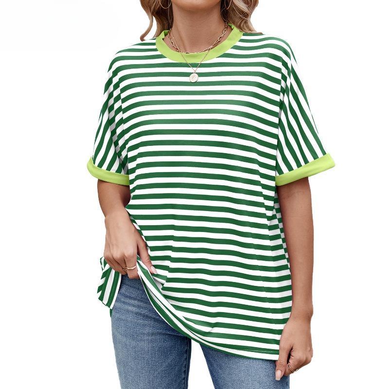 Женская летняя новая полосатая футболка с круглым вырезом и коротким рукавом в стиле Clash Color — купить товар онлайн с бесплатной доставкой по всему миру!