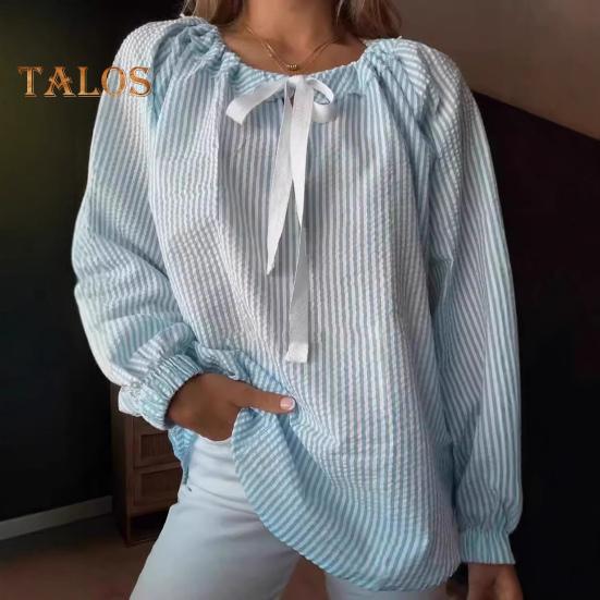 Эта рубашка с круглым вырезом, длинными рукавами и полосатыми украшениями станет идеальным выбором для повседневной носки, отдыха, свидания, прогулки, вечеринки, путешествия, пляжа, офиса или уличного стиля.