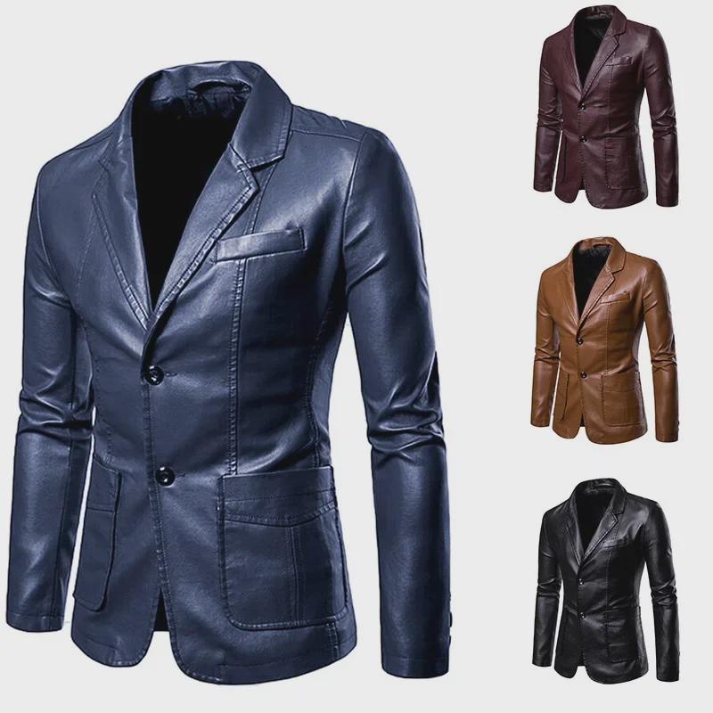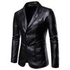 Мужская однотонная куртка из искусственной кожи с узкими лацканами
