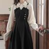 Платье-двойка больших размеров во французском стиле для женщин - длинный рукав, утягивающая талия, А-силуэт, осенняя мода
