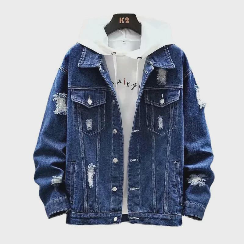Мужская модная рваная джинсовая куртка - осенний корейский стиль, свободный и повседневный