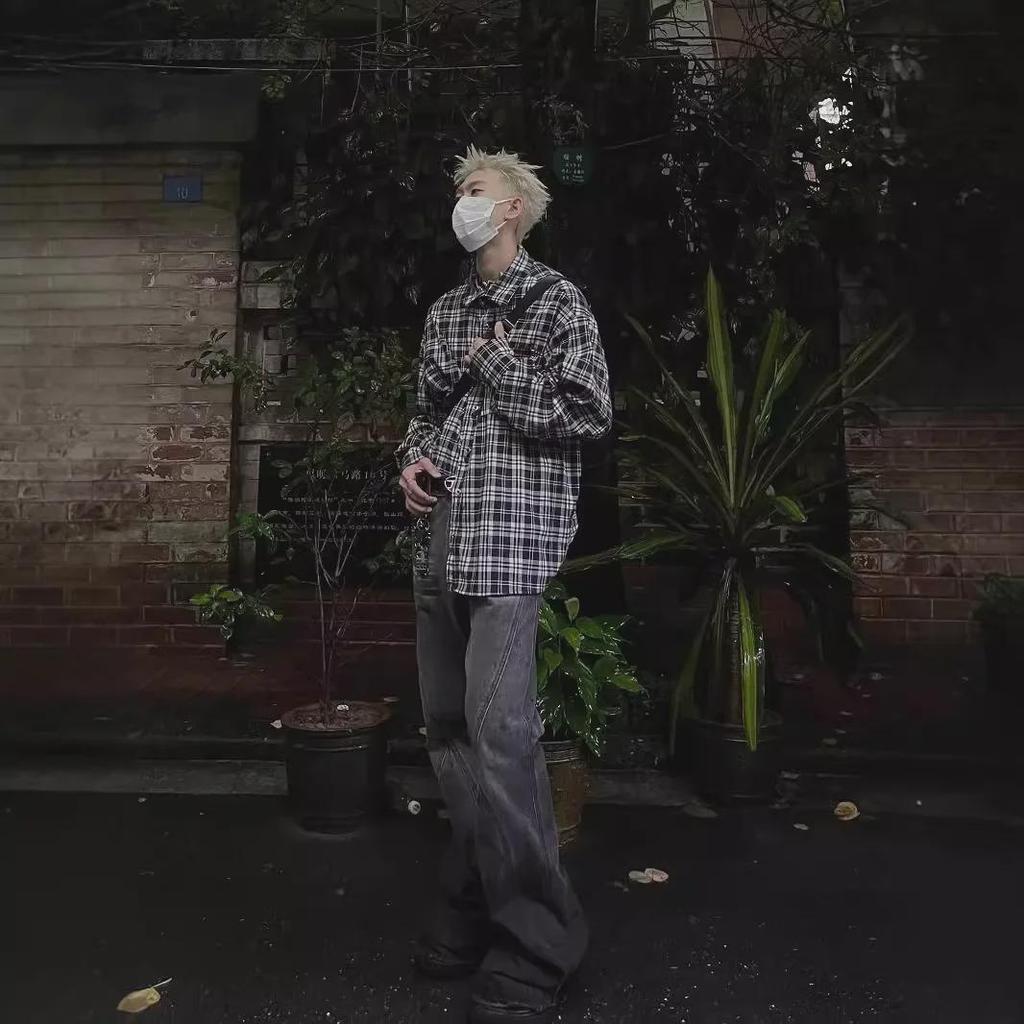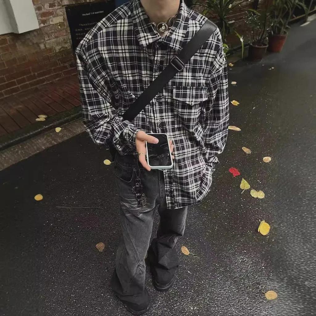 Мужская черно-белая клетчатая рубашка — свободная, повседневная, стиль весна/осень