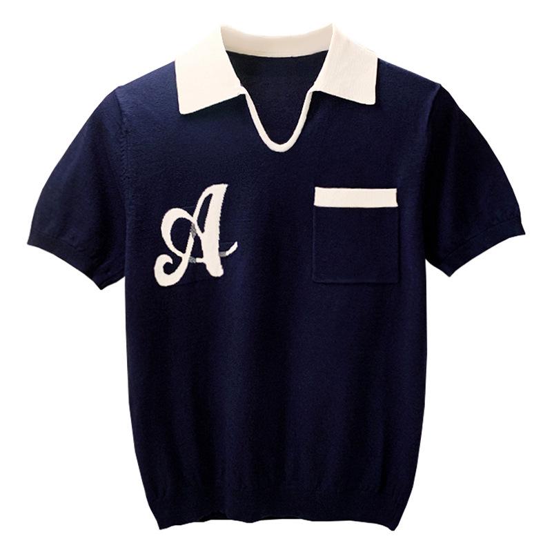 Трендовая мужская трикотажная рубашка-поло с цветными блоками и V-образным вырезом — европейский и американский стиль — купить товар онлайн с бесплатной доставкой по всему миру!