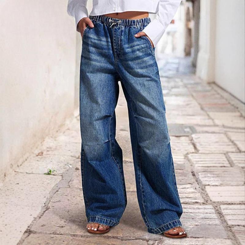 Женские весенние новые джинсы средней посадки с широкими штанинами и завязками на талии, уличные прямые брюки в стиле ретро