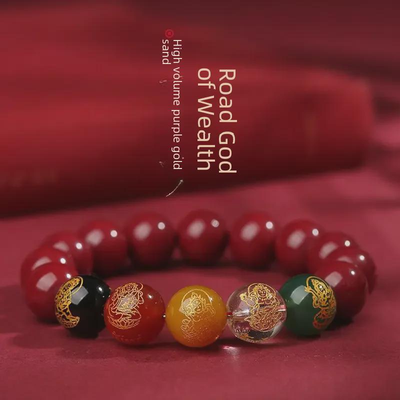 Браслет с изображением дракона и кролика из натуральной киновари — талисман «три в одном» и оригинальный браслет из рудных бусин