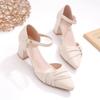 Женские туфли на лето 2024 года с мягкой подошвой, одним ремешком и острым носком на среднем каблуке