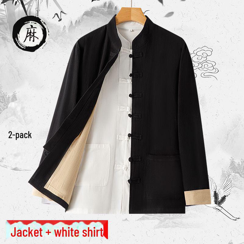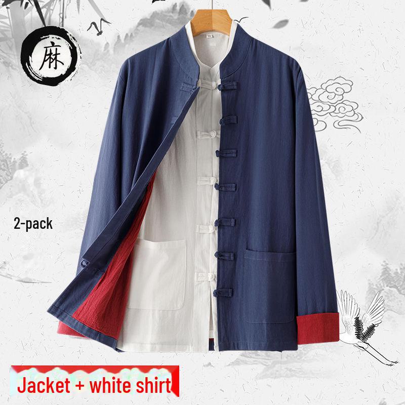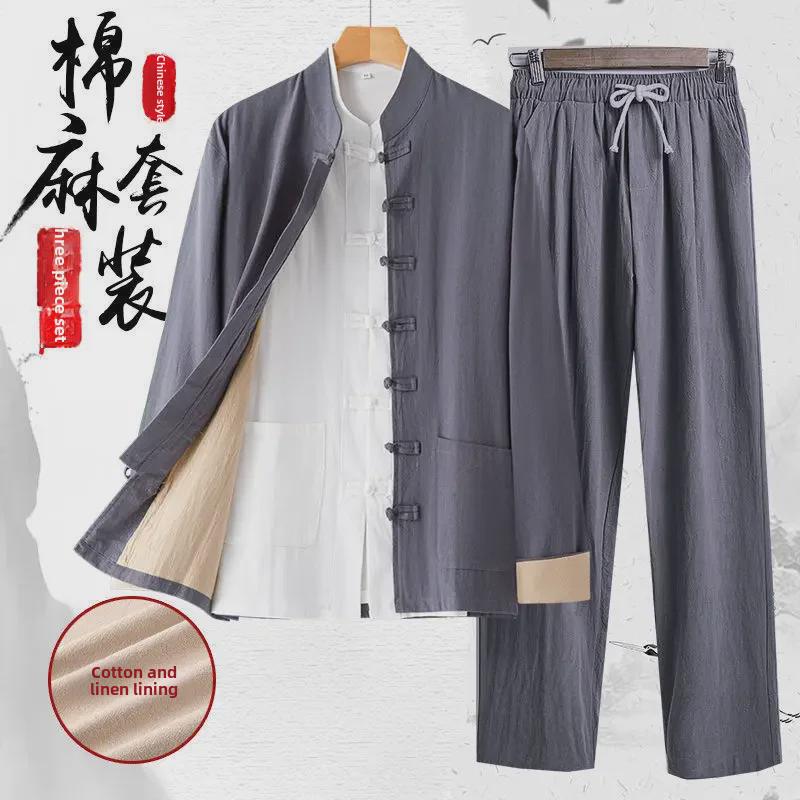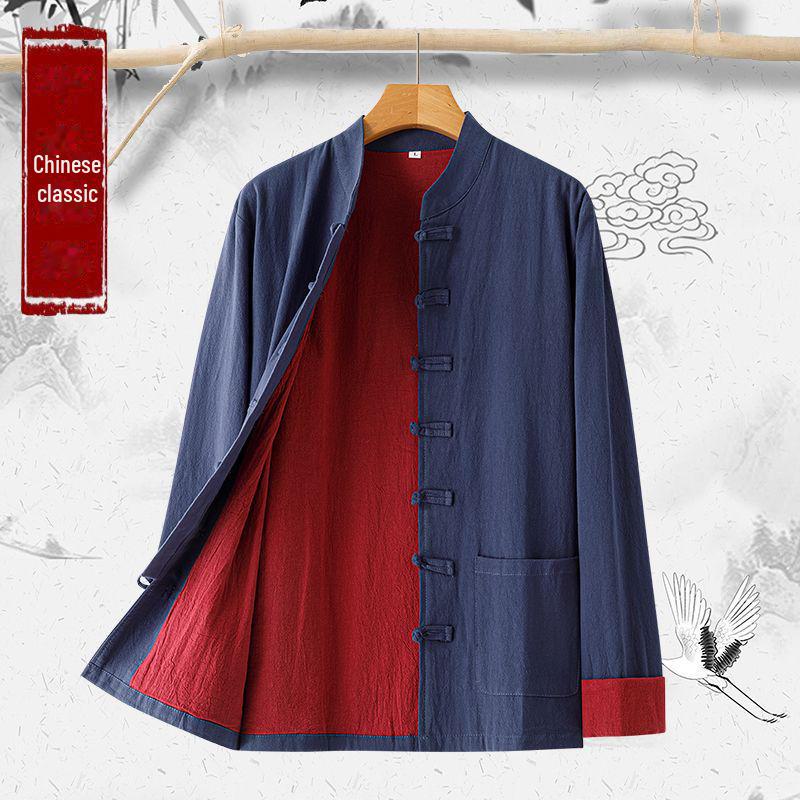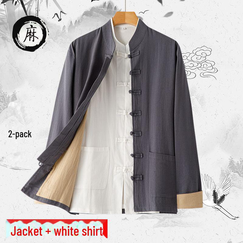 Мужской костюм Тан из хлопка и льна с длинными рукавами — ретро-китайский стиль для людей среднего и пожилого возраста на осень