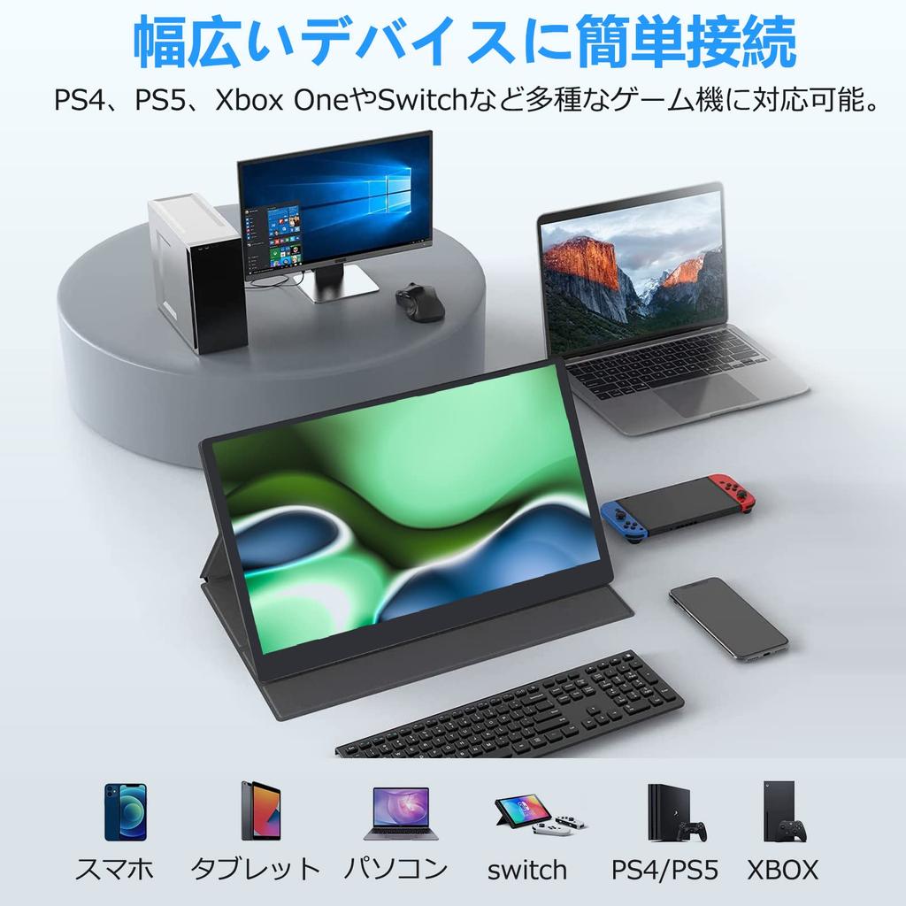[Поддерживает широкий спектр подключений] Мобильный монитор серии A имеет широкий спектр входных разъемов, два порта Type-C, порт Mini-HDMI и наушники 3,5 мм, что позволяет подключать его к различным устройствам, таким как ноутбуки, смартфоны, игровые приставки, камеры, планшеты, серии Fire TV Stick и промышленное оборудование.. Совместимость с большинством устройств ввода HDMI, дополнительные драйверы не требуются. *Если вы используете устройство USB Type-C, убедитесь, что ваш телефон или компьютер поддерживает протокол интерфейса Thunderbolt 3 или протокол USB 3.1.