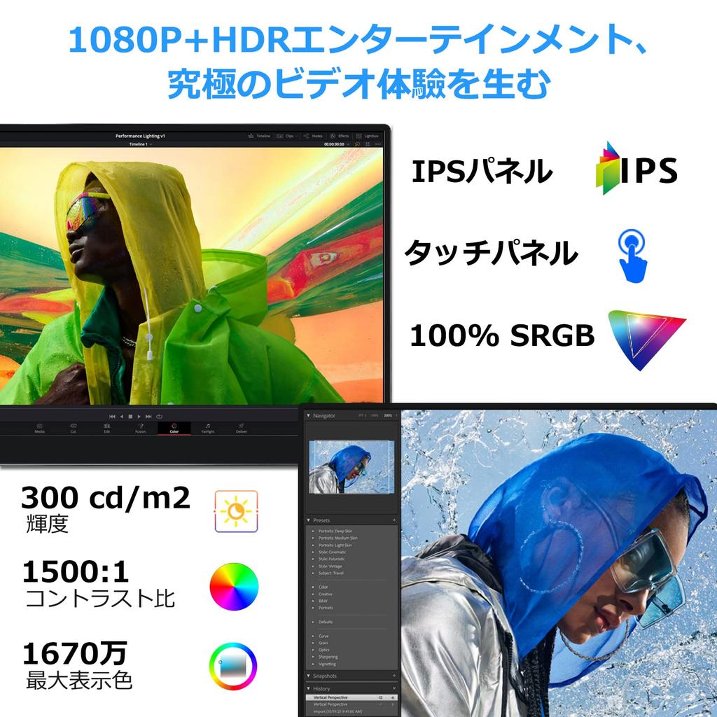 [IPS-панель с широким цветовым охватом 100% sRGB и поддержкой Full HD] Самая тонкая часть составляет 5 мм, поэтому вы можете легко носить ее с ноутбуком куда угодно. Использует IPS-панель с высоким качеством изображения и цветопередачей, обеспечивающую видимость как в помещении, так и на улице.. Дисплей поддерживает около 16,77 млн полноцветных цветов, что позволяет отображать глубокие оттенки, близкие к основным цветам.. Кроме того, разрешение 1920X1080, что поддерживает Full HD, а широкая цветовая гамма и высокая цветопередача со 100% охватом sRGB позволяют наслаждаться даже фотографиями и видео высокого разрешения, снятыми цифровой камерой, в четких, высококачественных изображениях.