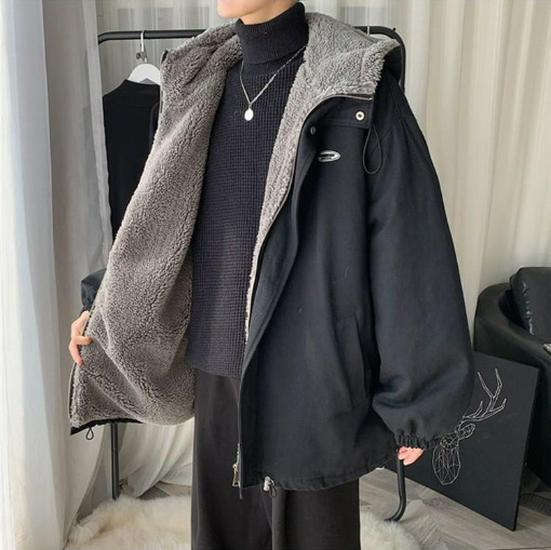 Мужское зимнее рабочее пальто из овчины - толстый бархат, красивая свободная хлопковая куртка