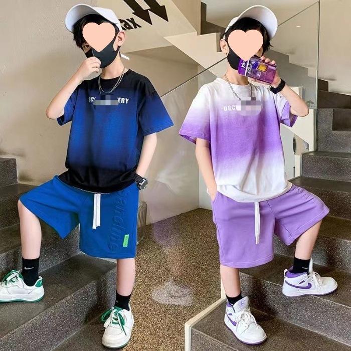 Стильный летний комплект из двух предметов для мальчиков 2024 года с буквенным принтом: Комплект из рубашки с короткими рукавами и шорт в тон для детей среднего и большого размера