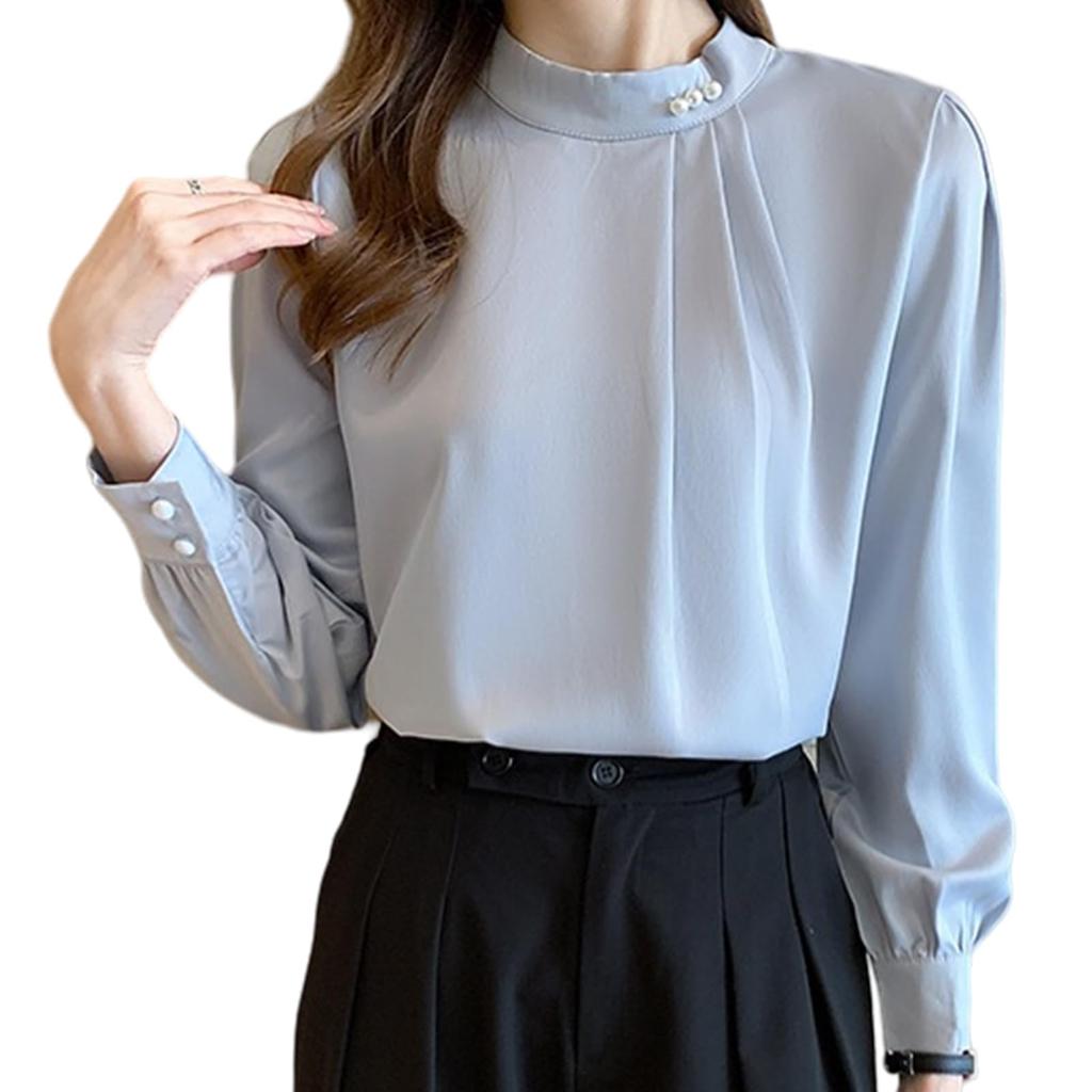 [Женственная блузка, женская, с длинным рукавом, стильная] Этой осенью в продаже появилась новая блузка, главным героем которой является жемчужная нежность, и всего с одной пуговицей, которая подчеркнет ваше чувство стиля.. Это отличный способ улучшить свой стиль, и мне кажется, что это стильный наряд со спокойным внешним видом.. Аккуратный воротник-стойка и уникальный дизайн пуговиц сделают вас похожей на интеллигентную и элегантную леди.. Присборенный дизайн с длинными рукавами создает женственный образ.. Кнопки на спинке также являются центральным элементом, благодаря чему эта вещь выглядит мило сзади.