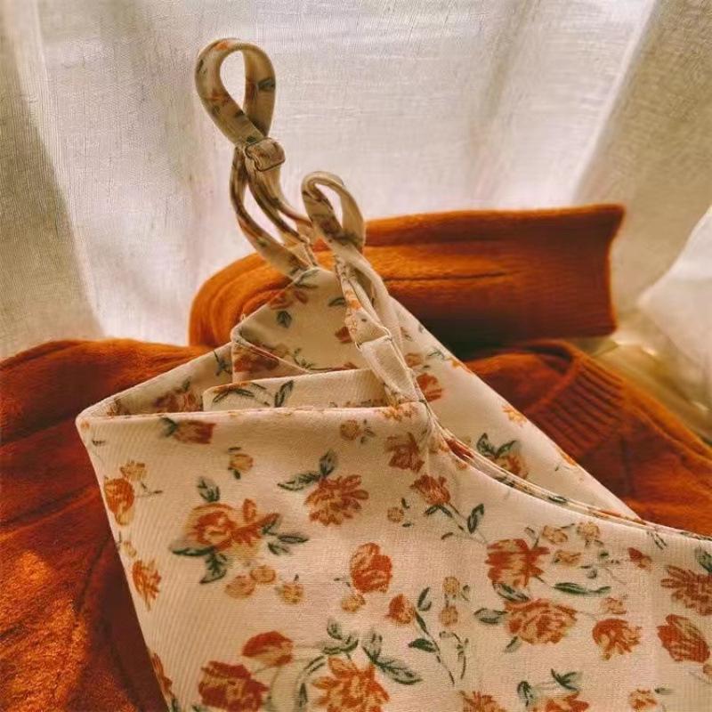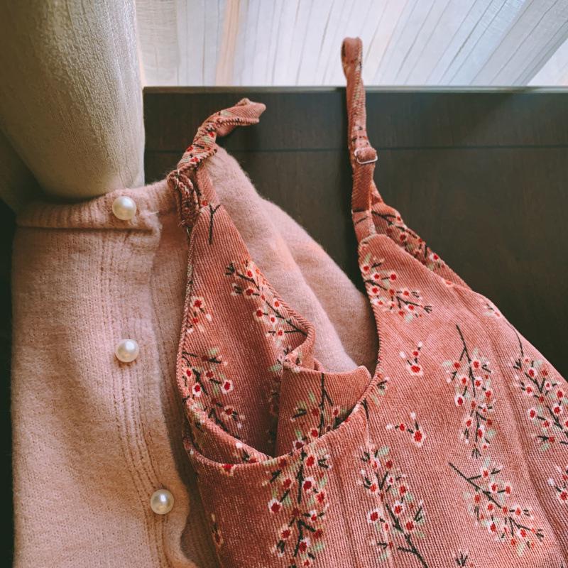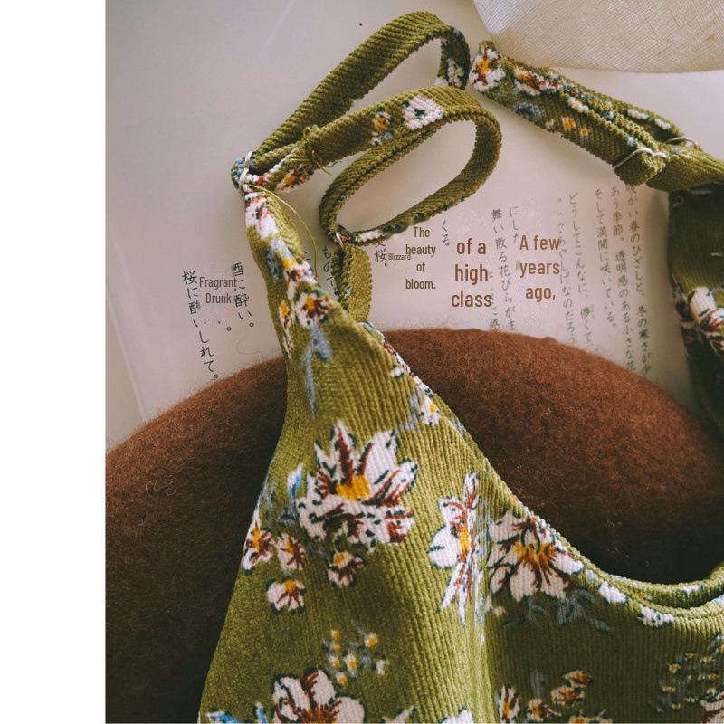 Юбка на подтяжках из вельвета в стиле ретро 2025 года с цветочным принтом — весеннее платье средней длины для женщин