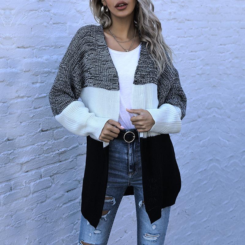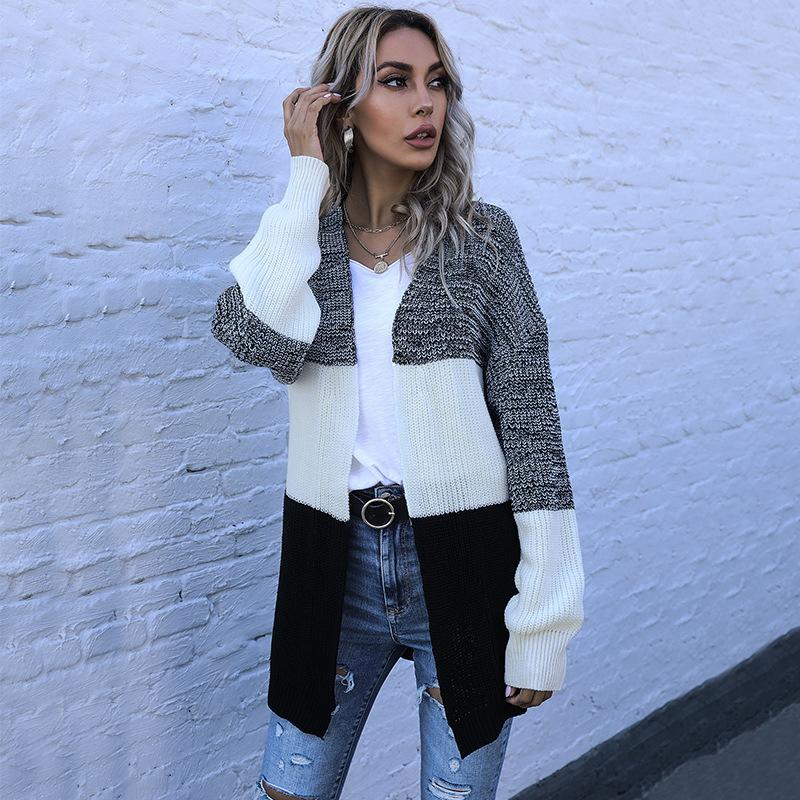 Повседневный тренд, универсальный, осенне-зимний, с длинными рукавами, цветной блок, свободный, повседневный, женский кардиган, свитер, куртка