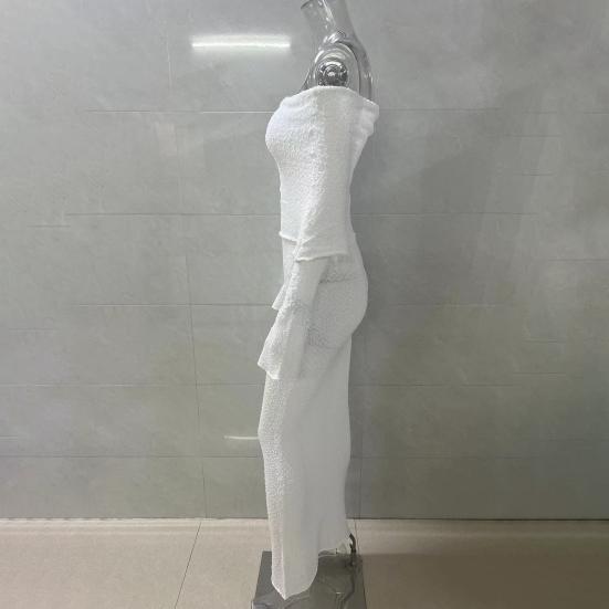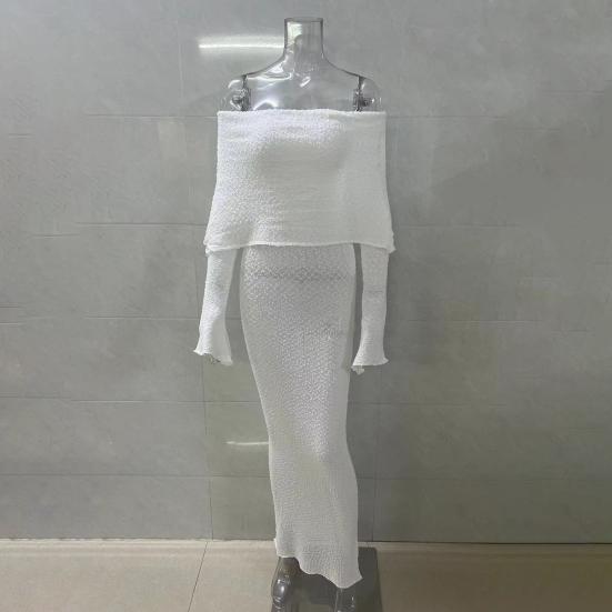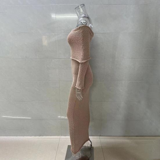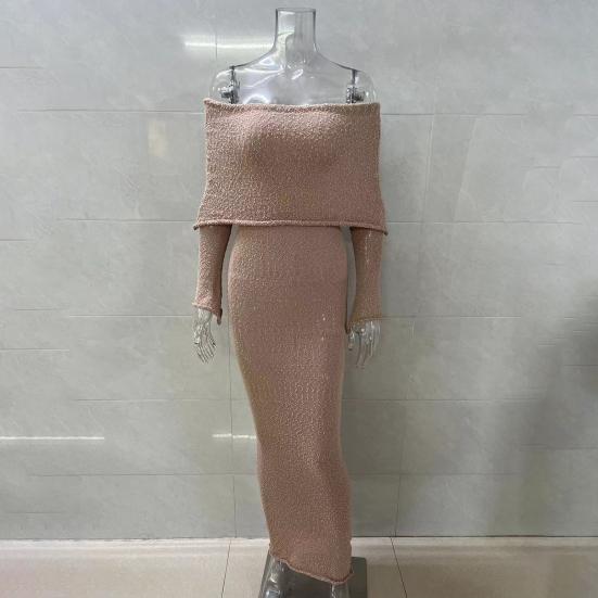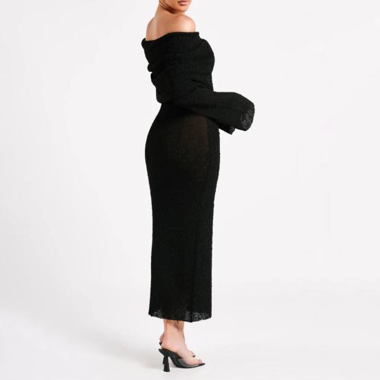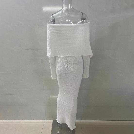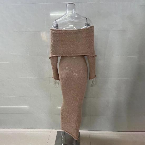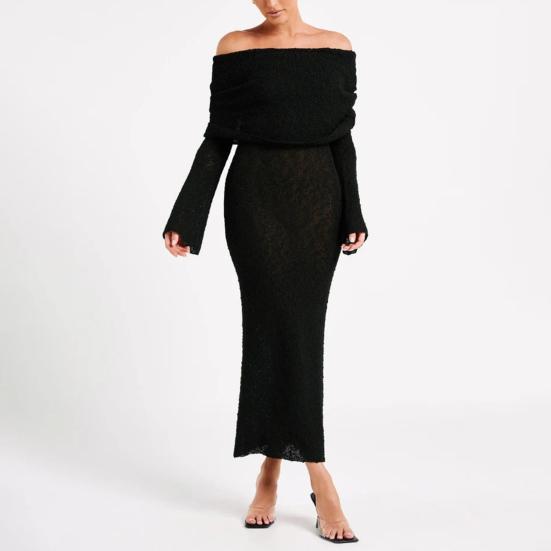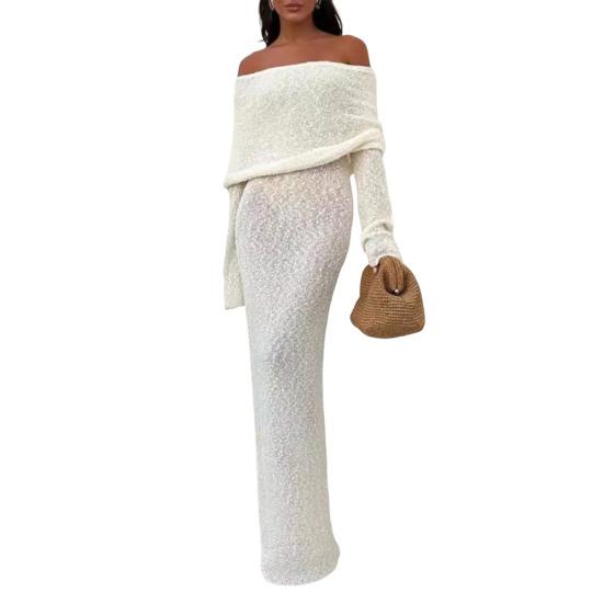 Длинные рукава и открытые плечи добавляют элегантности, а однотонный цвет делает его универсальным выбором для разных случаев.. Независимо от того, направляетесь ли вы на пляж, за покупками или на вечеринку, это платье обязательно выделит вас..