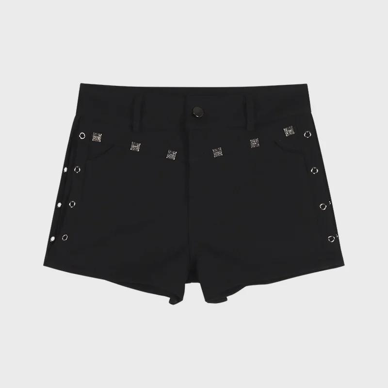 Женские узкие прямые черные повседневные шорты с высокой талией и заклепками - летние джинсы-скинни в американском стиле — купить товар онлайн с бесплатной доставкой по всему миру!